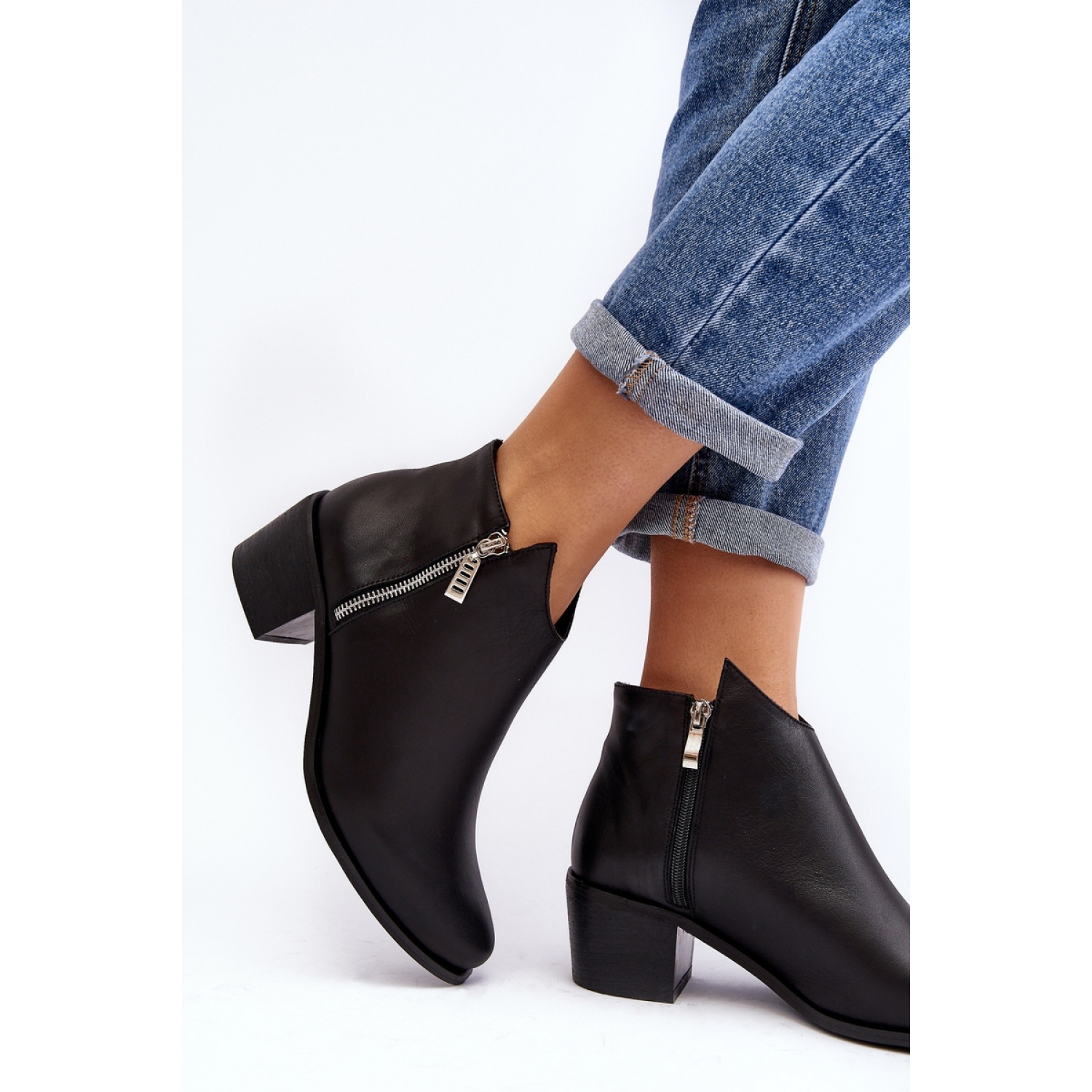 Bottines pour femmes en cuir naturel. Isolé à l'intérieur avec une couverture pour chaussures. Talon en forme de poteau bas. La tige est légèrement au-dessus de la cheville avec des fermetures éclair. Un talon raidi stabilisera le pied. Bouts en amande. Ce style classique devrait être dans votre garde-robe !