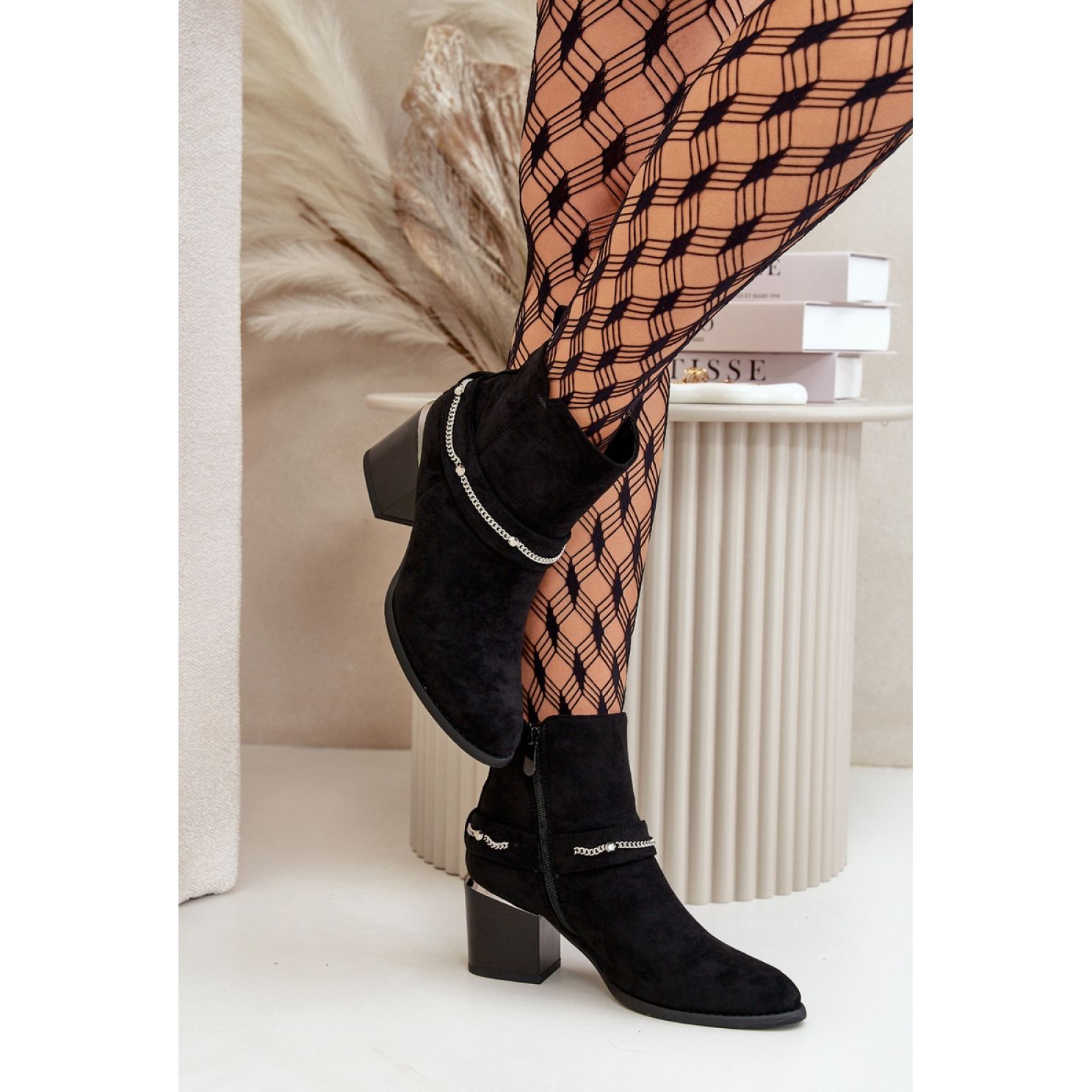 Les bottes noires Hanalen NS356 de Step in Style sont un excellent choix pour les femmes qui apprécient à la fois l'apparence à la mode et le confort. Fabriqué en cuir en daim écologique de haute qualité, ces bottes sont un ajout idéal aux jours plus frais. La tige de 11,5 cm de haut est décorée d'une chaîne élégante qui leur donne du caractère et les distingue dans la foule.