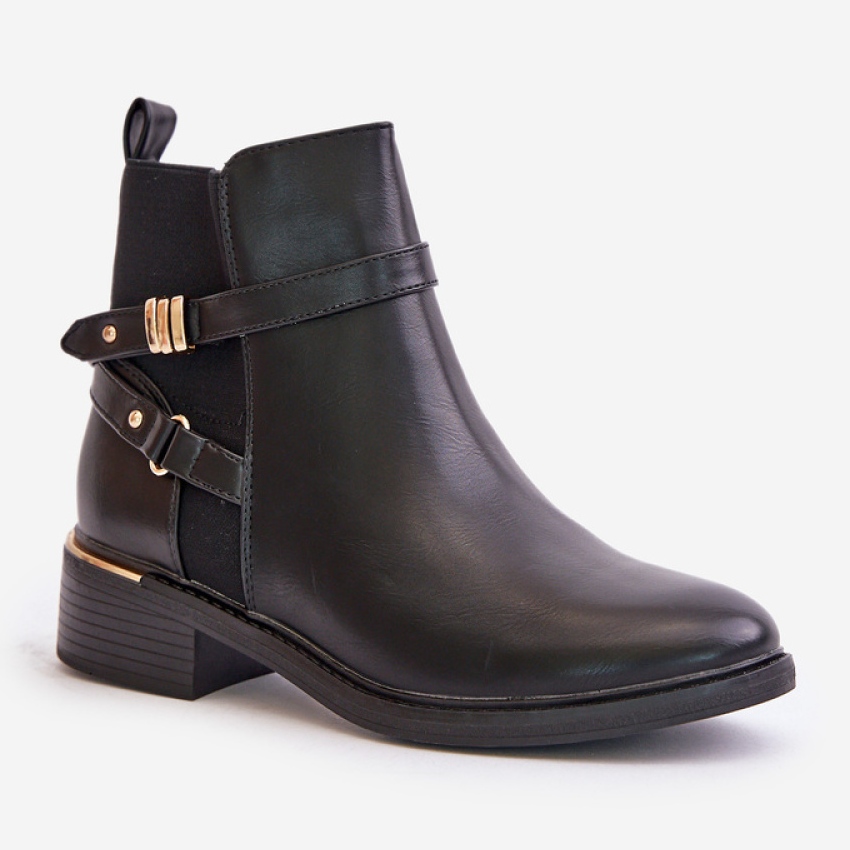 Leur couleur minimaliste et noire vous fait facilement les faire correspondre à différents styles, et les rayures décoratives de la tige leur donnent un caractère inhabituel. Grâce à un talon plat de 4 cm de haut, vous pouvez les porter toute la journée sans une sensation de fatigue. La hauteur de la tige de 12,5 cm fournit un support adéquat pour la cheville.