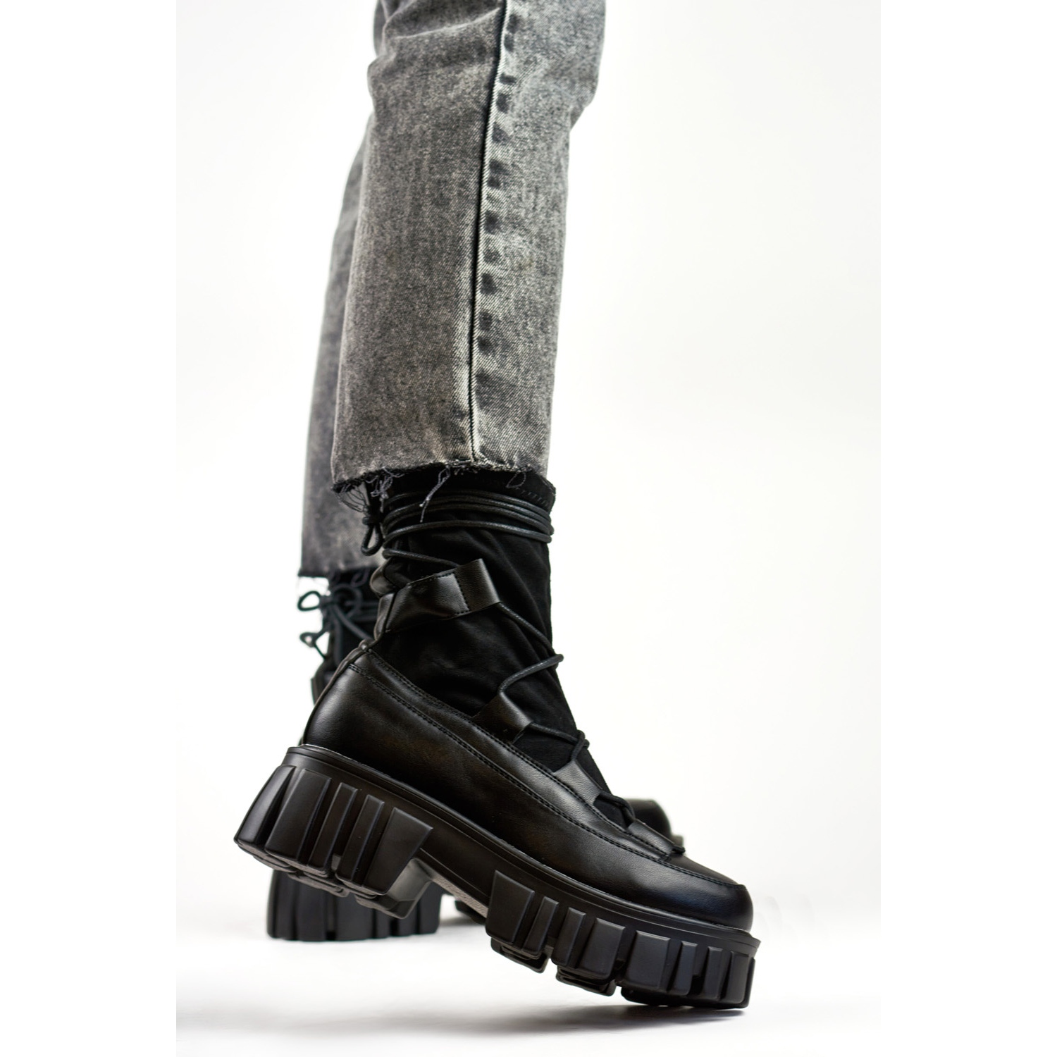 Le laçage pratique met non seulement le style, mais vous permet également de faire correspondre avec précision la forme du pied. Le nez rond fait que ces bottes se mélangent parfaitement avec diverses stylifications - de décontractée à plus élégante. De plus, la hauteur du talon de 5,5 cm signifie qu'elles garantissent le confort de porter tous les jours, sans abandonner le charme féminin.