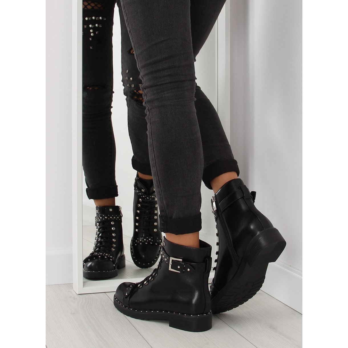 Détails: Bottes noires à clous ae82p noir cuivre