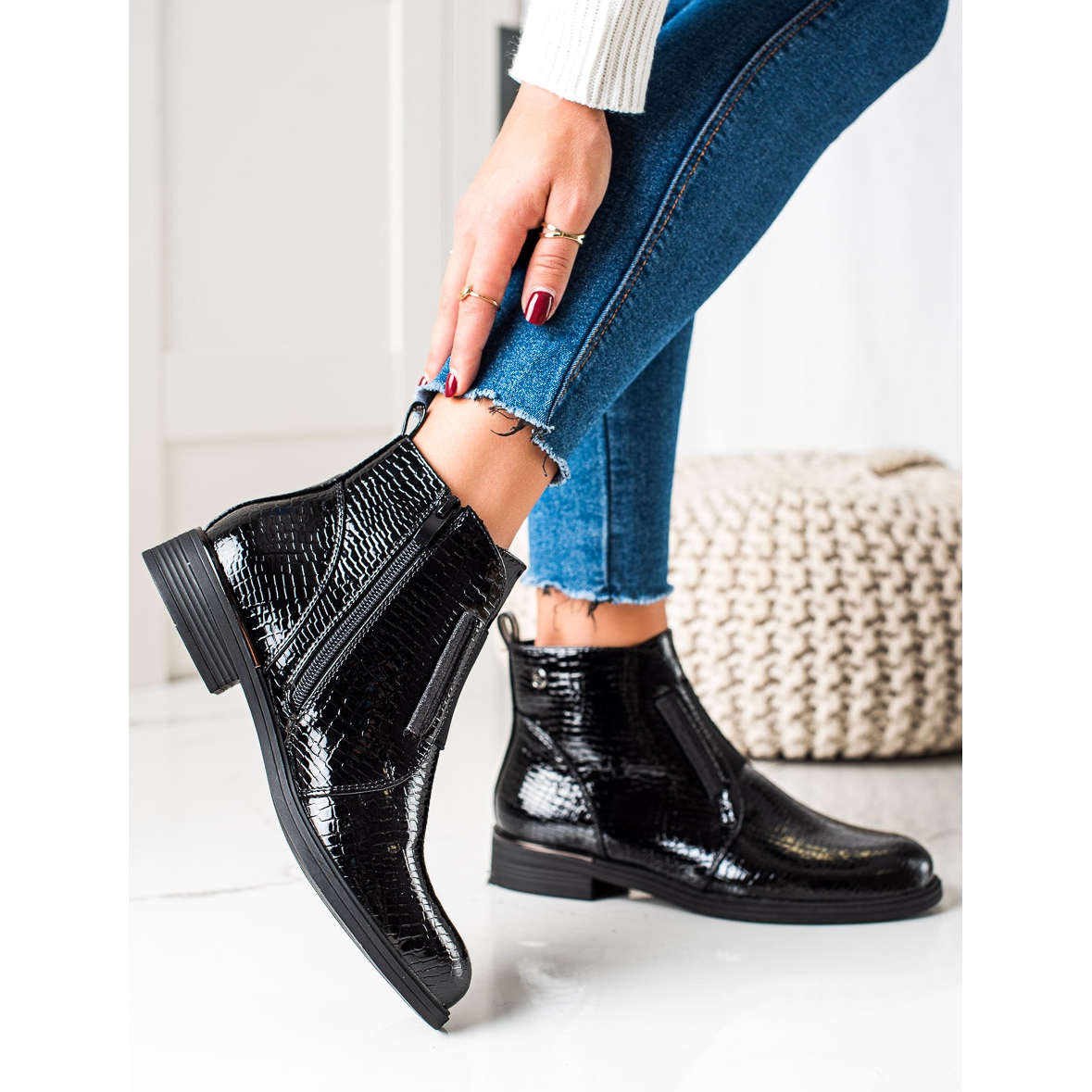 La partie supérieure des chaussures est réalisée en cuir écologique de haute qualité avec un motif animalier, ce qui leur donne un look unique et moderne, et la matière textile utilisée à l'intérieur garantit un confort de port. La finition laquée ajoute de l'élégance, ce qui en fait un excellent choix pour toute occasion.