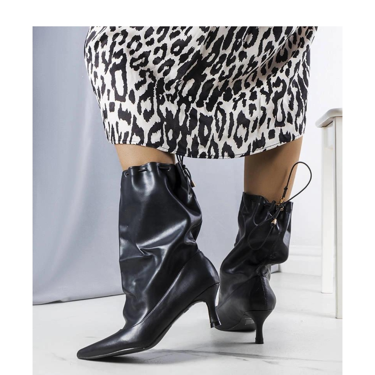 Découvrez la combinaison parfaite de style et de confort grâce aux bottes noires à thèmes basses. Ces chaussures élégantes, en écosme lisse, sont un excellent choix pour les femmes qui apprécient un look à la mode, sans abandonner le confort. Une hauteur de la cheville lâche et un nez pointu leur donnent un personnage sophistiqué, ce qui les rend excellentes dans les stylisations décontractées.
