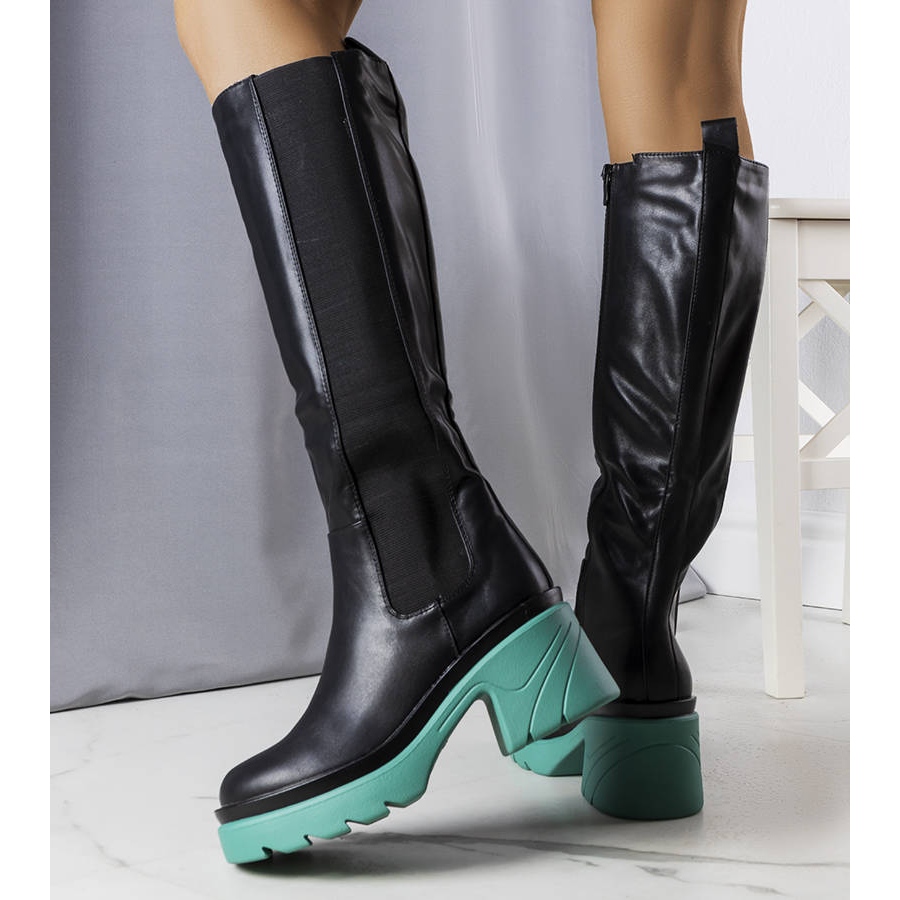 Inna marka Bottes noires à semelles bleues de Charla le noir