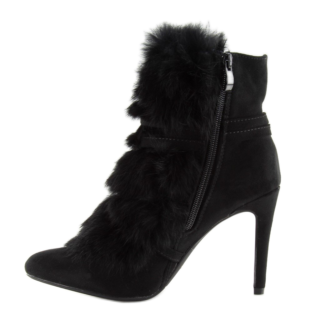 Détails: Bottes noires à talon haut avec fourrure noire 1319 Black