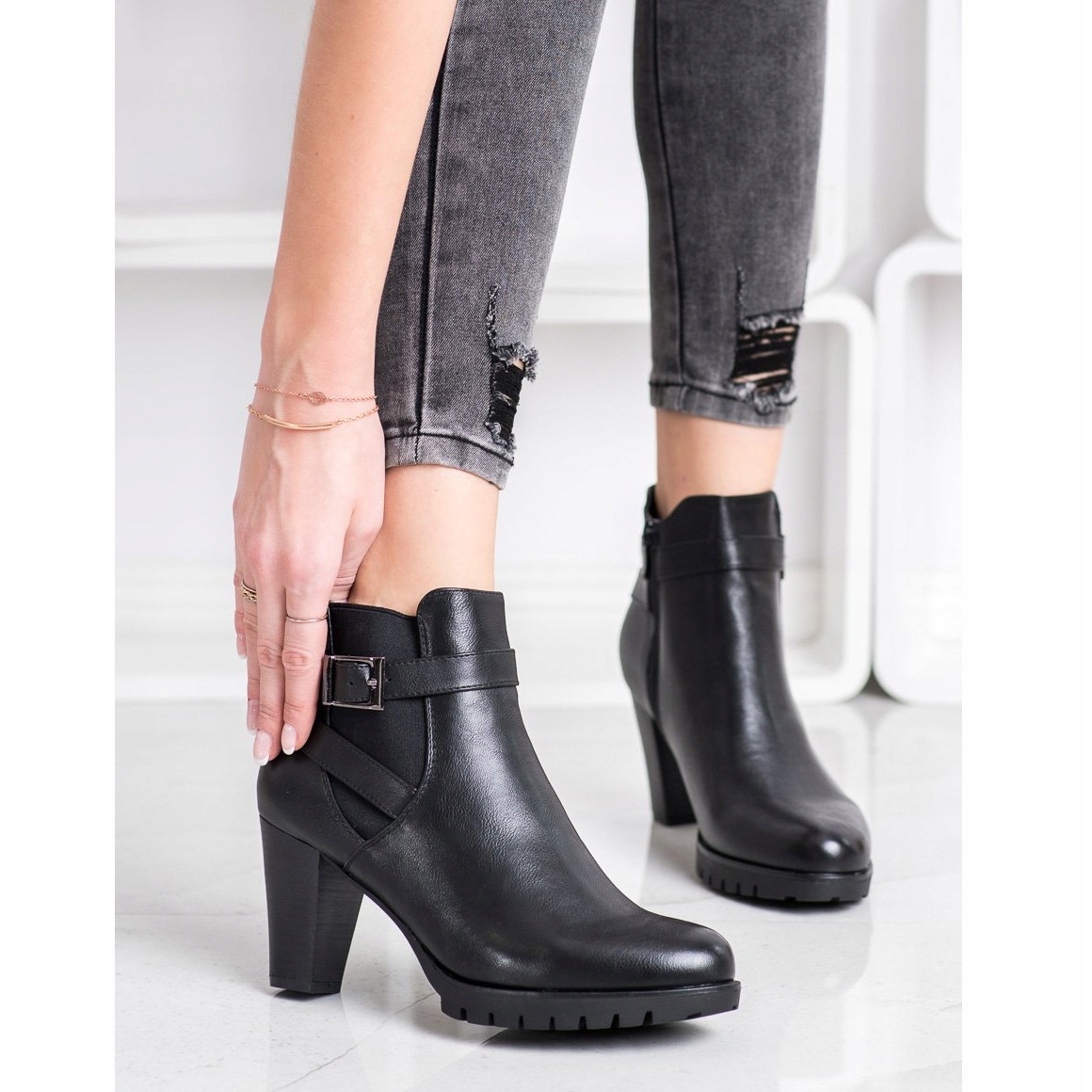 Ces bottines élégantes avec un talon haut de 8 cm et une tige jusqu'à la cheville mettent parfaitement en valeur la silhouette féminine. Ils offrent également une isolation interne agréable, ce qui les rend parfaits pour les journées plus froides. Le bout rond et le talon souple intégré assurent un port confortable, et la fermeture éclair facilite l'enfilage et le retrait des chaussures.