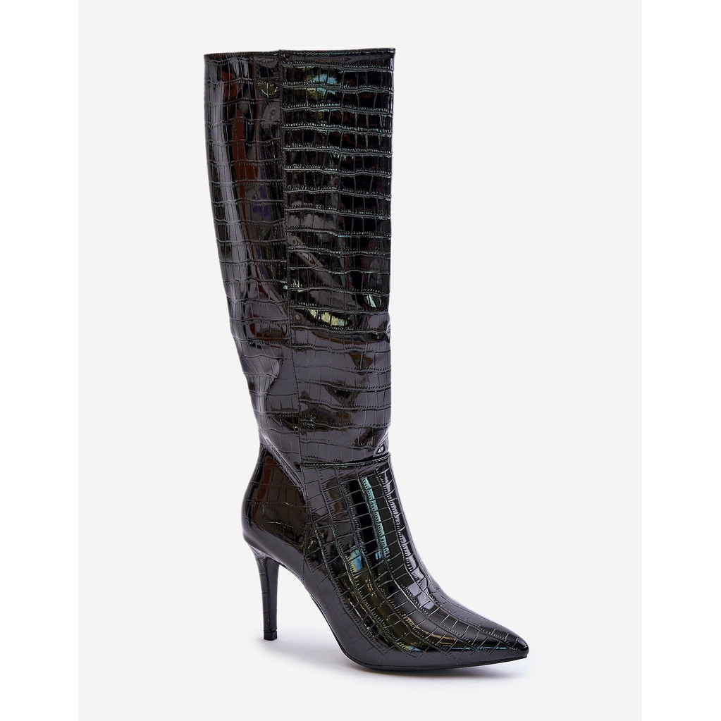 Détails: Bottes noires à talons hauts gaufrés Reanwenna le noir