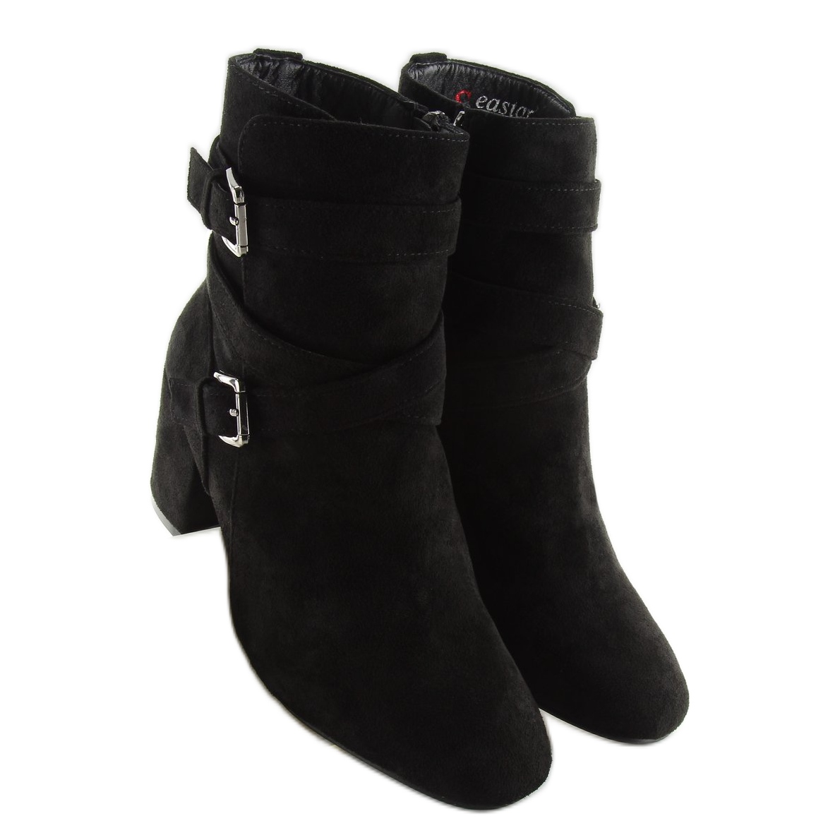 Découvrez l'élégance et le confort à la fois grâce aux bottines à talons larges CL62 de couleur noire classique. Ces bottines uniques pour femmes sont fabriquées en daim écologique de haute qualité, ce qui les rend non seulement élégantes, mais également respectueuses de l'environnement. Un talon stable en forme de bloc d'une hauteur de 7 cm assure un excellent équilibre et un excellent confort au porté, ce qui en fait un choix idéal pour les longues journées.