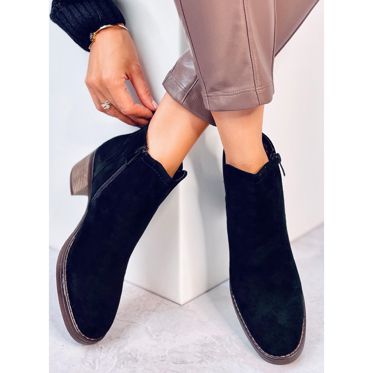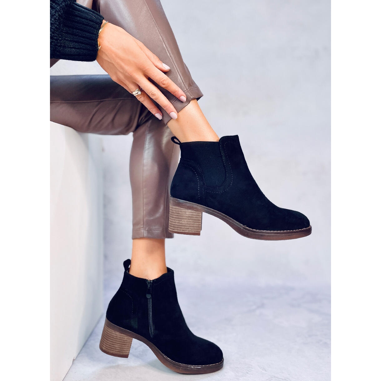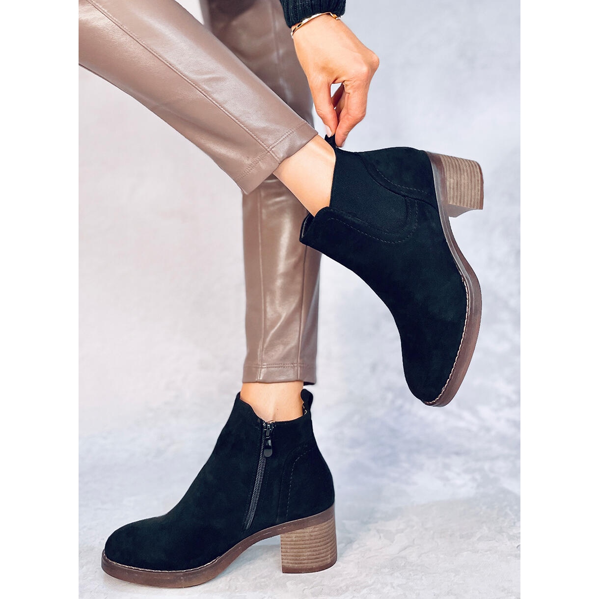 Les bottines Fill Black sont des chaussures pour femmes raffinées dans les détails qui s'adapteront parfaitement à n'importe quel style de tous les jours. Elles sont confectionnées en daim noir écologique, ce qui leur confère un look classique. Les bottes sont montées sur un talon haut large et stable de 6 cm, ce qui ajoute de l'élégance et garantit en même temps un confort de port. Il y a une fermeture éclair sur le côté de la tige - fermeture pratique et rapide. De plus, un accent intéressant est l'insert élastique qui fait référence à l'aspect classique des bottines Chelsea. L'intérieur des chaussures est doublé d'une fourrure délicate qui offre une isolation supplémentaire. Le matériau extérieur des bottes est en cuir écologique et la semelle est en matière synthétique. Les bottes sont livrées dans l'emballage d'origine du fabricant. Le poids du produit avec emballage est de 1,2 kg. Les bottes sont lisses, sans motif et arrivent au-dessus de la cheville. Le produit est dans la catégorie : Femme » Femme » Bottes. Le code du fabricant est BM182669 et le produit provient de la collection KeeShoes.