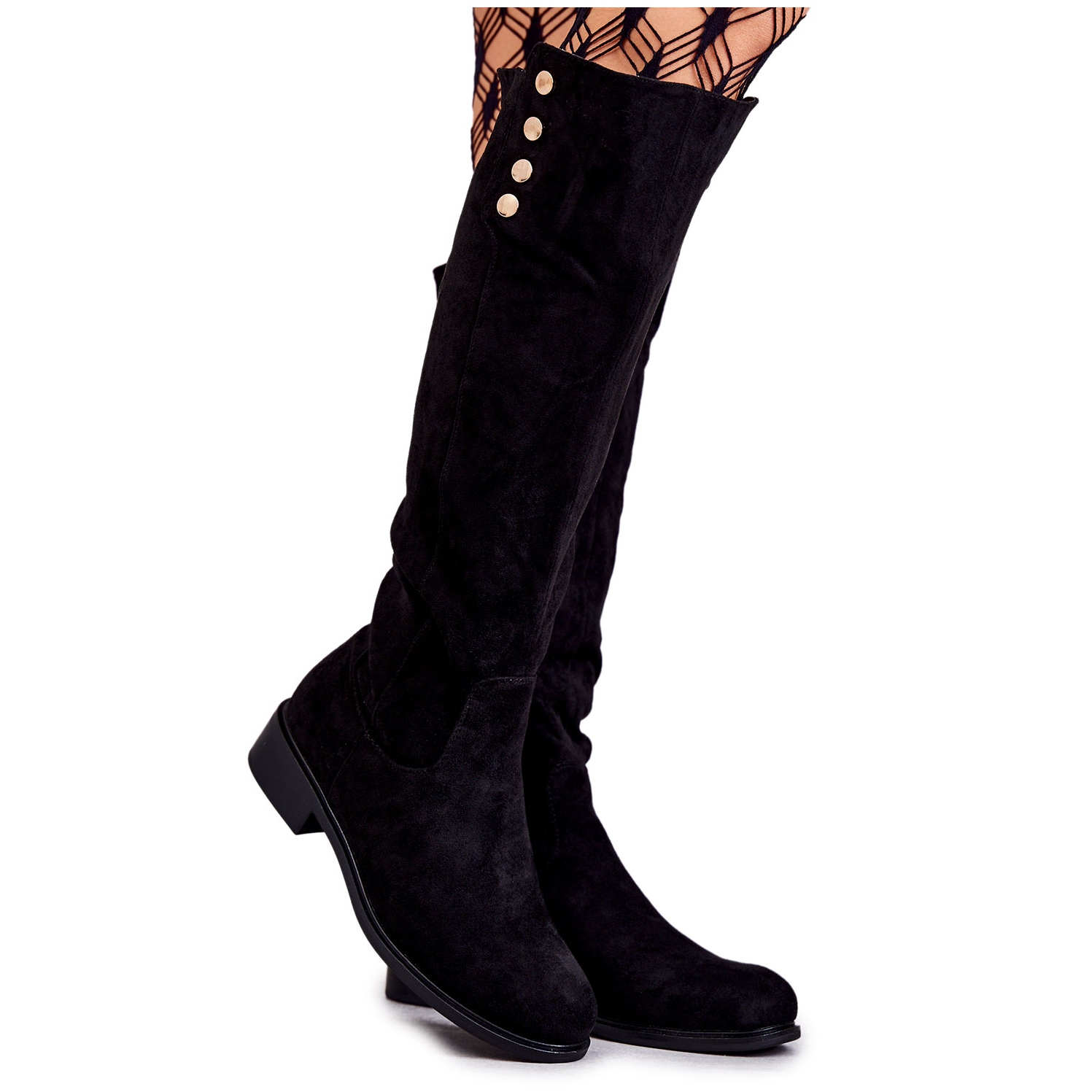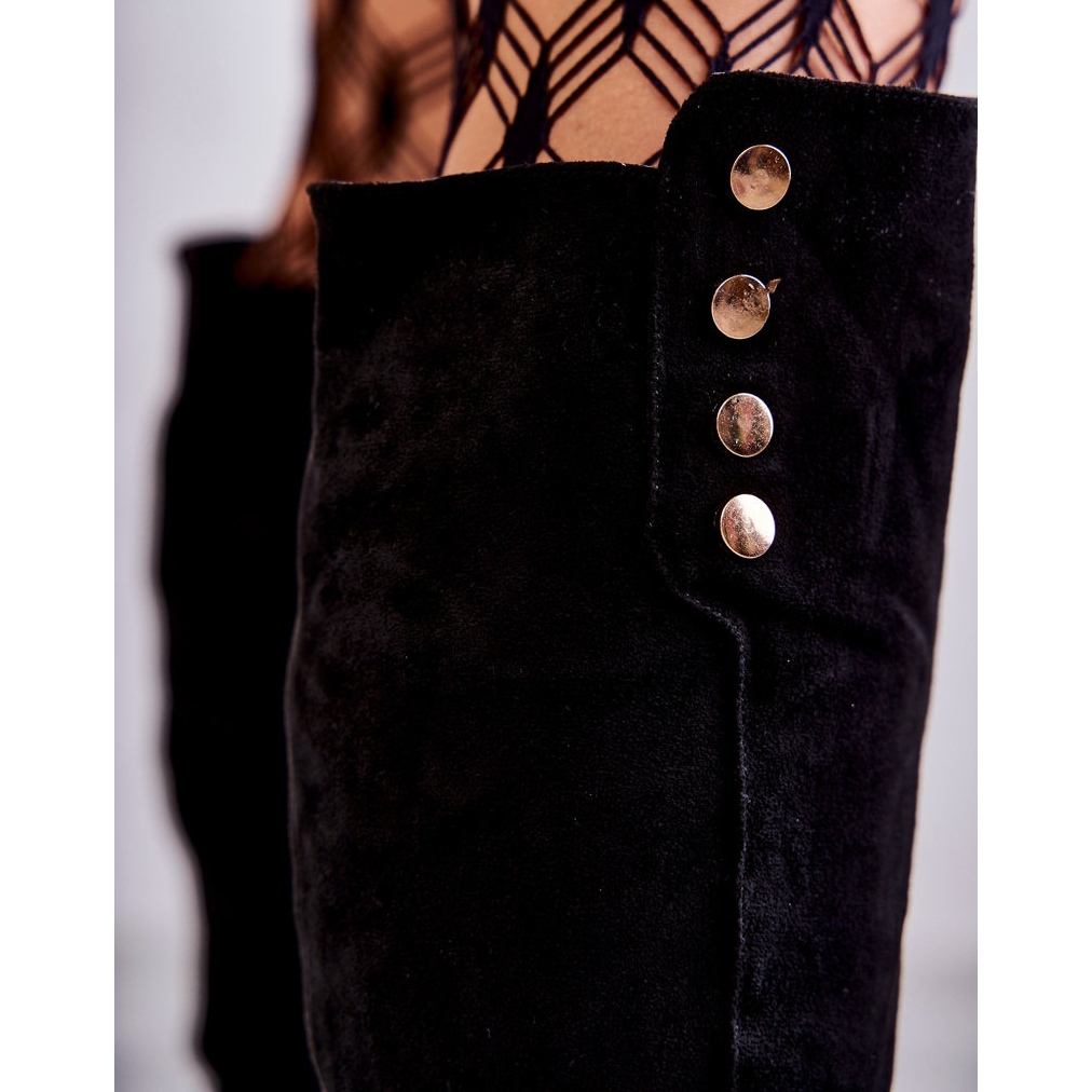 Détails: S.Barski Bottes noires à talons plats en suède Laura