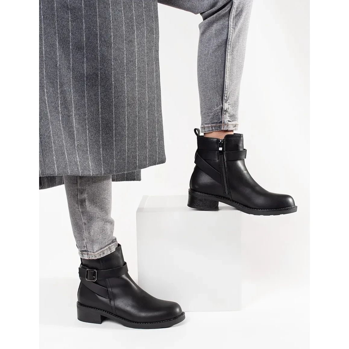 Les bottes foncées à glissière sont une solution extrêmement pratique qui le rend plus facile à mettre et à décoller. La hauteur de la hauteur atteignant la cheville et une largeur de 26 cm assurent un ajustement parfait au pied, ce qui se traduit par la stabilité et le confort.