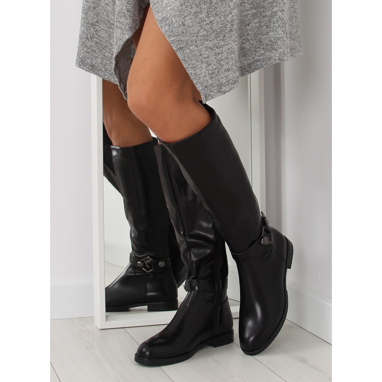 Ces bottes ont un talon plat de 3 cm, ce qui les rend non seulement élégantes, mais aussi confortables au quotidien. Le bout rond et la hauteur de la botte atteignant le genou offrent un soutien et un confort de port adéquats. Le matériau de la semelle en matière synthétique garantit durabilité et bonne adhérence.