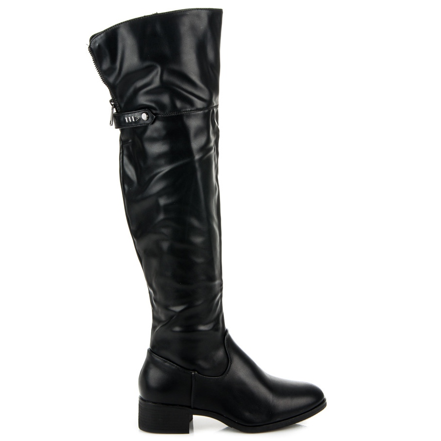 Détails: Bottes noires au-dessus du genou le noir