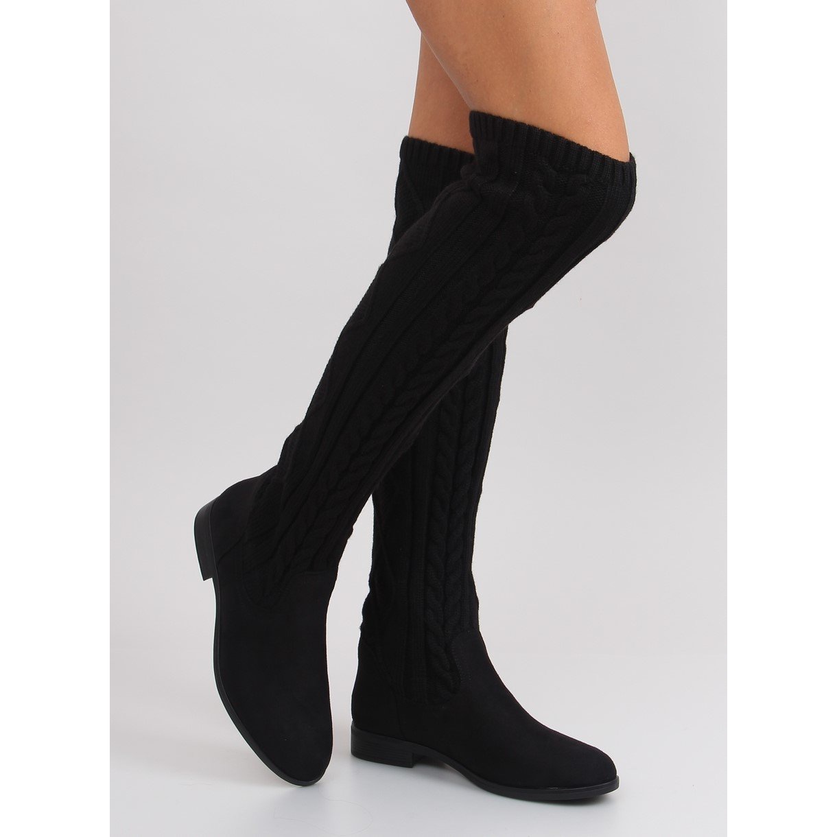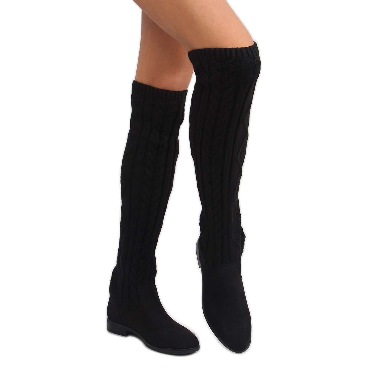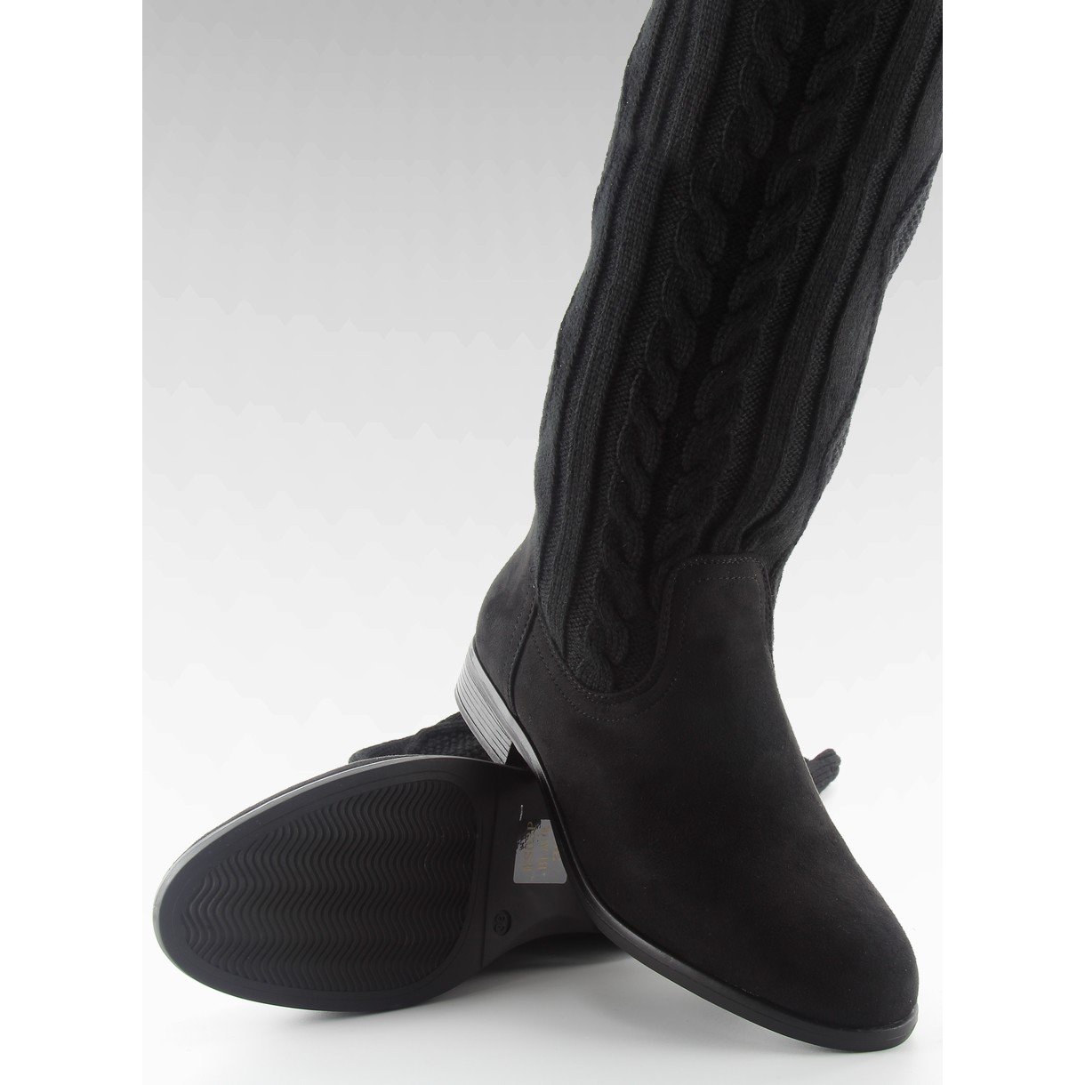 Découvrez des bottes pour femmes uniques avec une tige en fil de couleur noir intense, qui sont la combinaison parfaite entre confort et style. Ces superbes chaussures à semelle plate sont un choix parfait pour la saison d'automne et d'hiver. La tige haute, arrivant au-dessus de la cheville, réalisée en fil doux, s'adapte parfaitement à la jambe, assurant un look tendance.