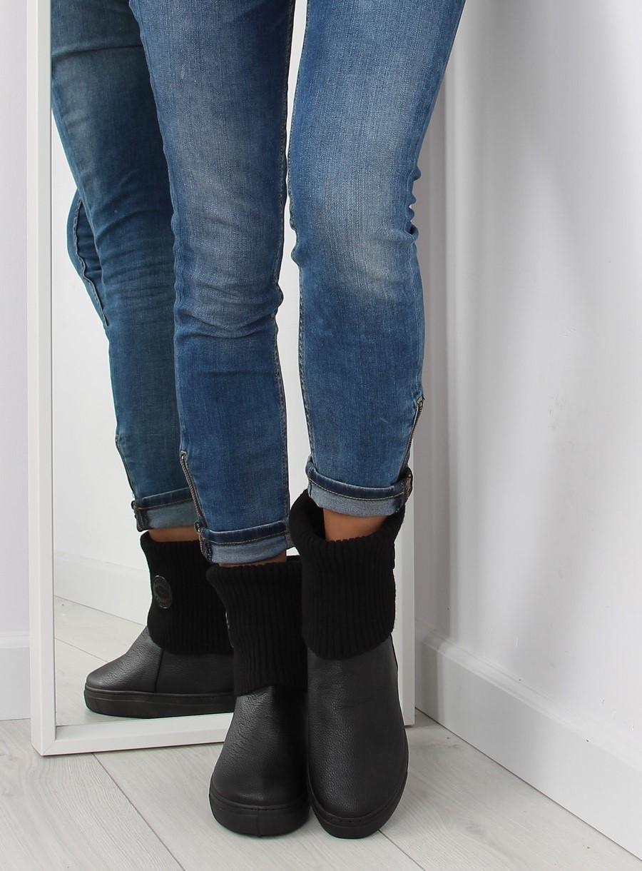 Bottines à tige en laine NB30 noir II-GAT - bottes pour femmes élégantes et confortables à semelle plate. La tige est constituée d'une matière au toucher semblable à celle d'un pull (effet laine) et est très souple, grâce à laquelle les chaussures s'adaptent parfaitement à la jambe et assurent un confort de port tout au long de la journée. Partie du pied en cuir écologique.