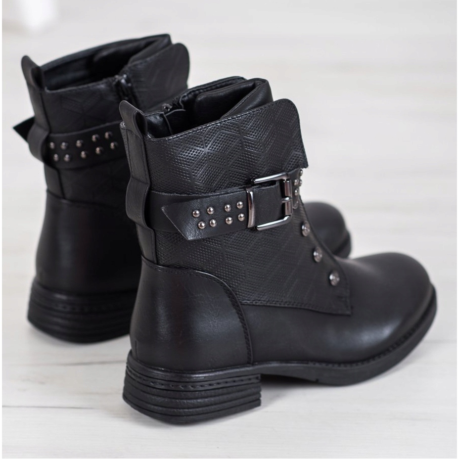 Nous vous présentons des bottines noires de la célèbre marque J. Star, qui complètent parfaitement n'importe quel style. Fabriquées dans un matériau esthétique de haute qualité semblable au cuir, ces chaussures universelles allient design à la mode et fonctionnalité, ce qui en fait un choix parfait pour la saison automne/hiver.