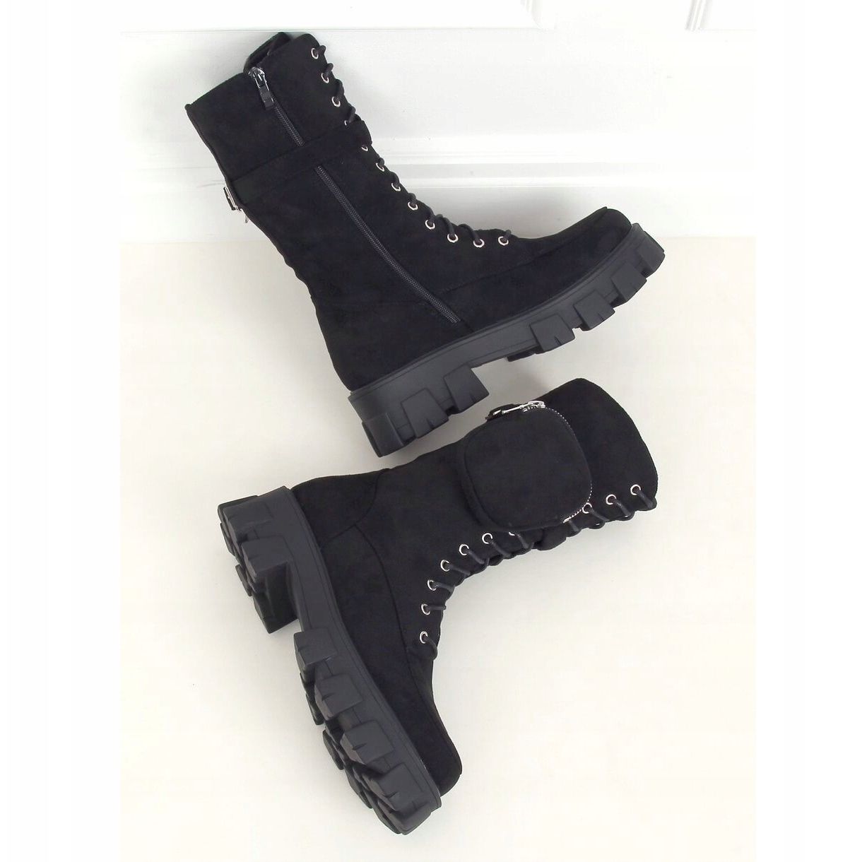 Les bottes sont équipées d'une sangle amovible avec une pochette, ce qui vous permet de les porter de deux manières : vous pouvez décider si vous souhaitez ajouter un peu d'extravagance ou aller au classique. Le design à lacets, enrichi d'une fermeture éclair pratique, facilite l'enfilage et le retrait des chaussures, ce qui les rend extrêmement confortables au quotidien.