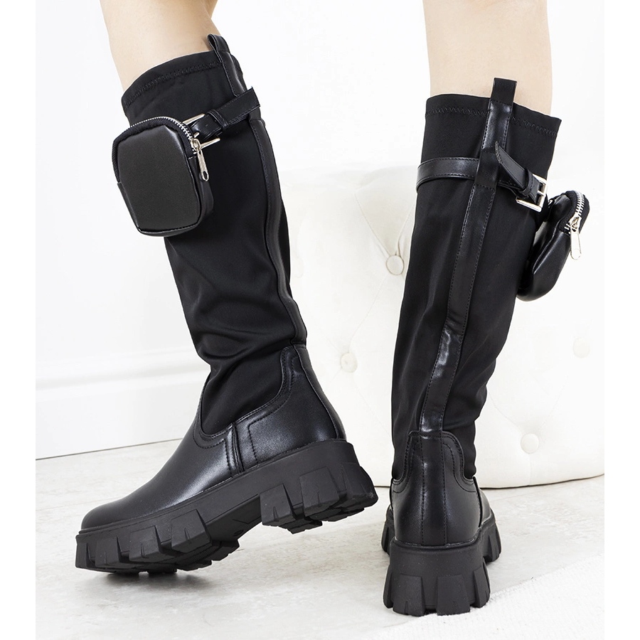 Découvrez le dernier hit de la saison : des bottes noires avec un sac ! Ces chaussures élégantes sont la combinaison parfaite de design à la mode et de confort qui attireront certainement l'attention de nombreuses personnes. La semelle épaisse trappeur est non seulement superbe, mais assure également confort et stabilité à chaque pas.