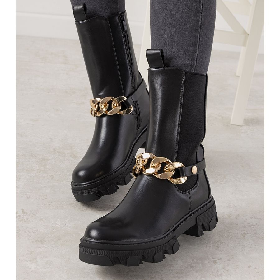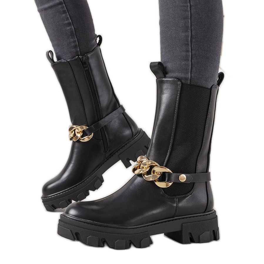 Détails: Bottes noires avec une chaîne en or de Luce