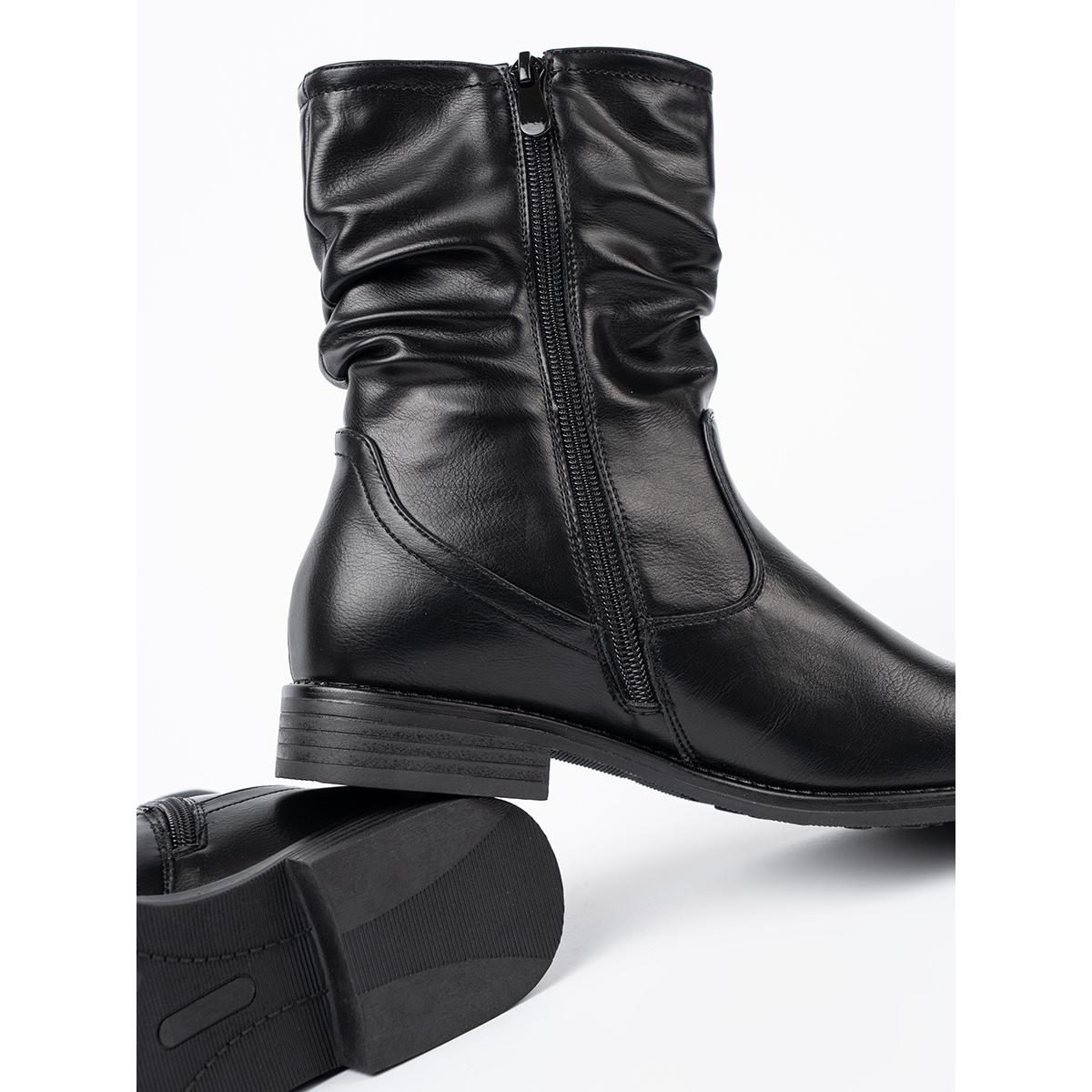 Les bottes ont une semelle en plastique lisse qui garantit une bonne adhérence, et la hauteur du talon de 3 cm vous permet de vous déplacer librement à la fois pendant la journée et pendant les sorties du soir. L'orteil rond et la largeur des 28 cm supérieurs ajoutent du charme féminin aux chaussures, et leur couleur noire universelle les rend parfaits pour de nombreux styles.