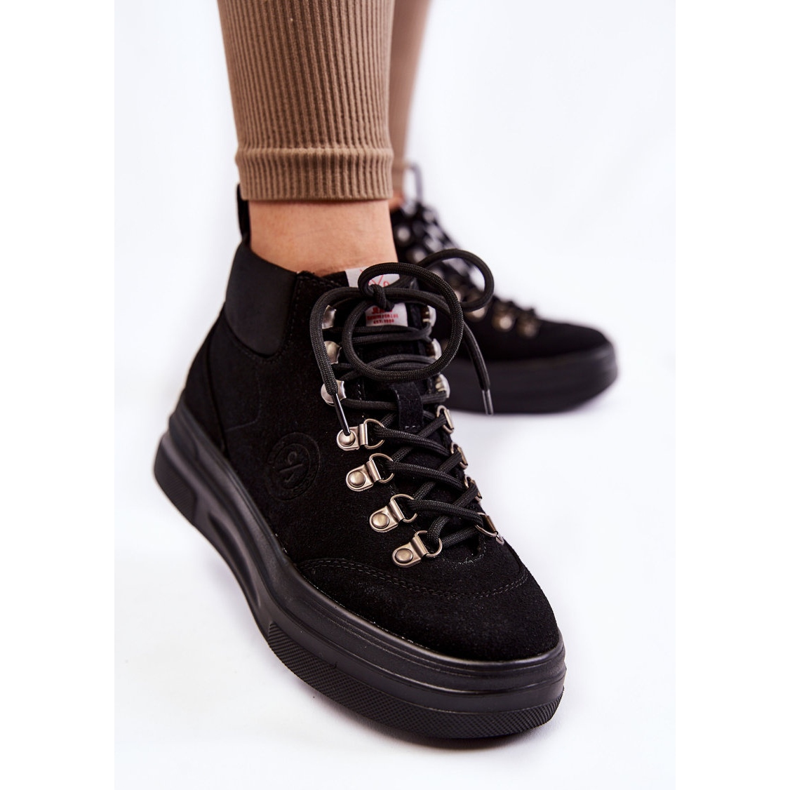Découvrez les bottes uniques de style trappeur Cross Jeans KK2R4074C dans une élégante couleur noire qui complèteront parfaitement votre style automnal. Fabriquées à partir d'une combinaison d'imitation suède et de matière synthétique de haute qualité, ces bottes sont non seulement élégantes, mais sont également durables et confortables.