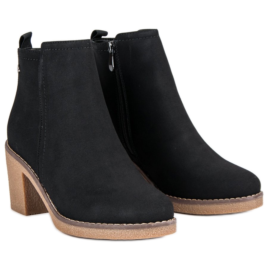 Le daim écologique foncé à partir duquel les bottes sont fabriquées s'harmonise parfaitement avec la semelle en caoutchouc légère et solide, ce qui leur donne un look moderne. Le nez rond et la fermeture éclair sur les côtés facilitent leur enfilage, ce qui augmente encore leur fonctionnalité.