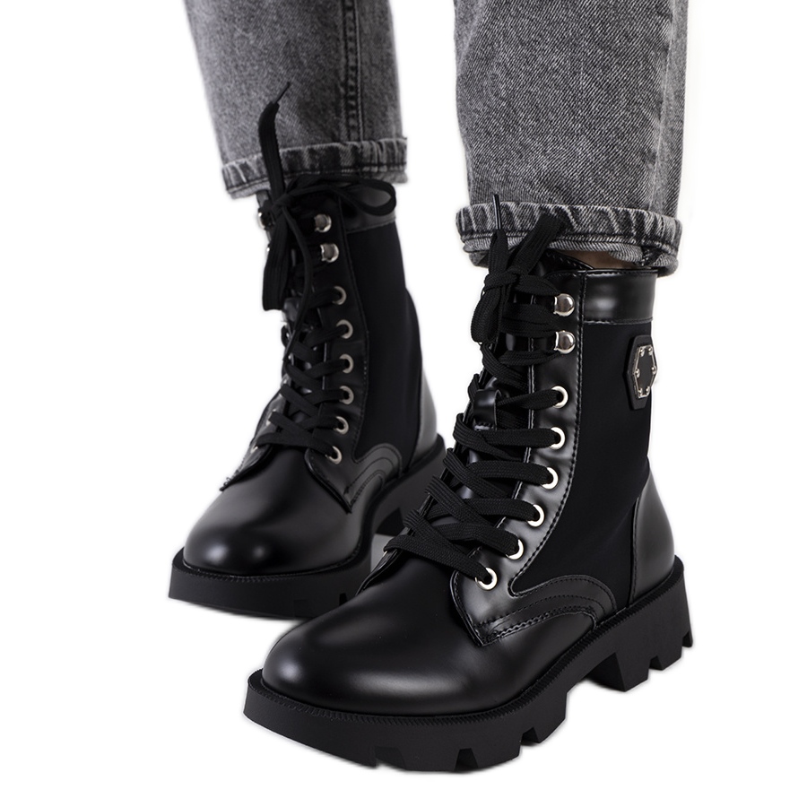 Black Keld Trappers - Bottes solides, élégantes et confortables idéales pour la saison automne / hiver. Le modèle est en écotage écologique avec l'ajout de matériau étanche, monté sur une semelle en caoutchouc épaisse avec une bande de roulement. Grâce au réchauffement de la lumière à l'intérieur et à l'insert isolé, ils offriront un confort même les jours plus frais.