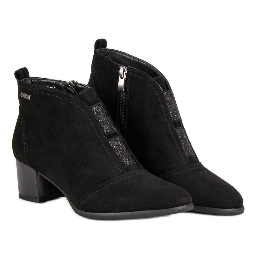 Les élégantes bottines noires Filippo sont le choix parfait pour les femmes qui apprécient une combinaison de confort et d'élégance. Fabriqués en daim écologique de haute qualité, ils sont non seulement à la mode, mais aussi élégants. Leur élément caractéristique est un talon bloc de 5 cm de haut, qui assure stabilité et confort au quotidien.