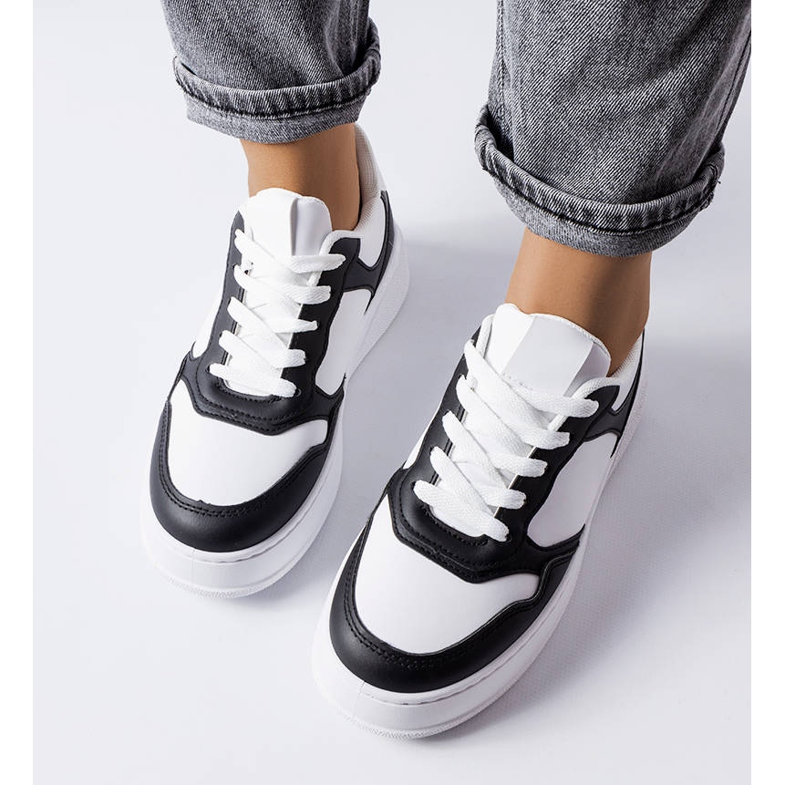 Nous vous présentons d'élégantes chaussures blanches Baron blanches et noires avec une semelle épaisse, qui s'adaptent parfaitement au style à la mode des années 1980. Ces baskets se caractérisent par une tige à la cheville et un bout rond, qui assurent à la fois confort et apparence attrayante. Ornés d'inserts décoratifs de la couleur de la reliure, ils s'adaptent parfaitement à tout style décontracté.