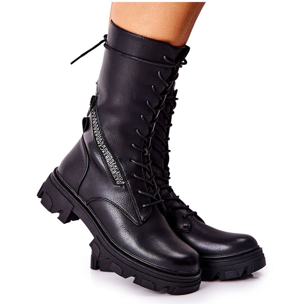 Les chaussures se caractérisent par une plateforme stable d'une hauteur de 2,5 cm et un talon plat d'une hauteur de 4,5 cm, qui assure un confort de port, même sur des trajets plus longs. De plus, la fermeture éclair latérale et le laçage facilitent l'enfilage, et la fermeture éclair décorative leur donne un caractère unique.