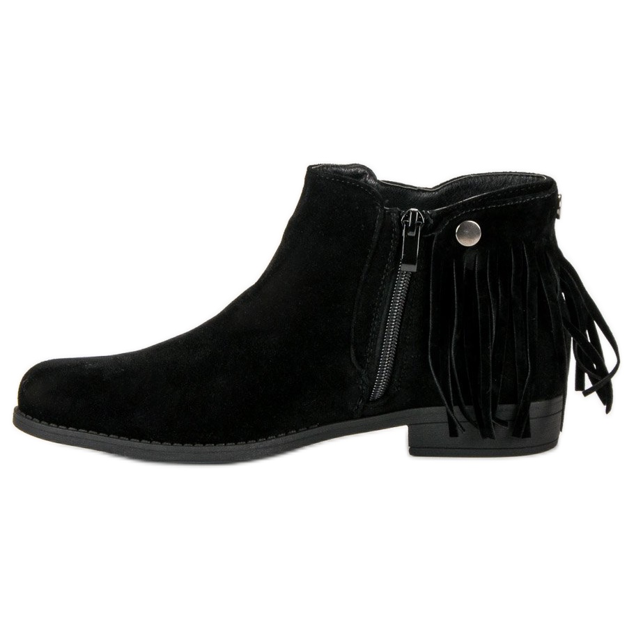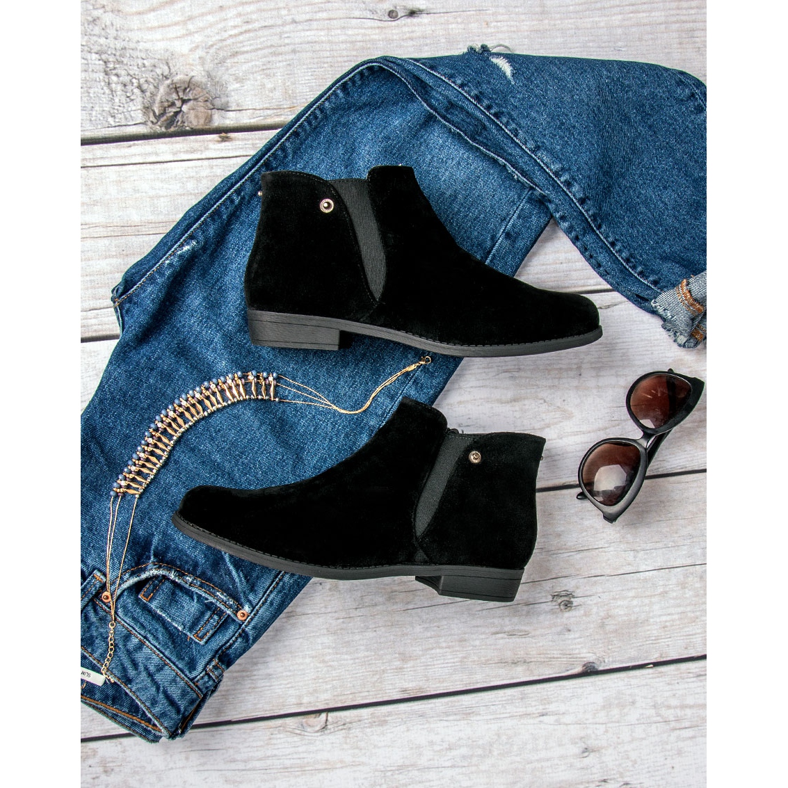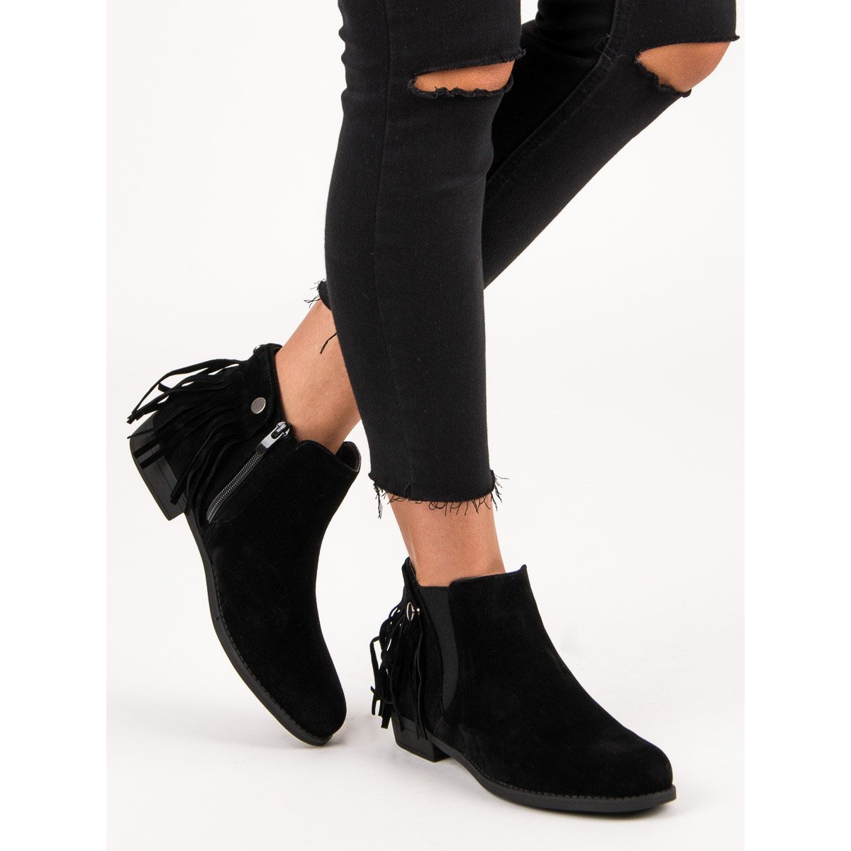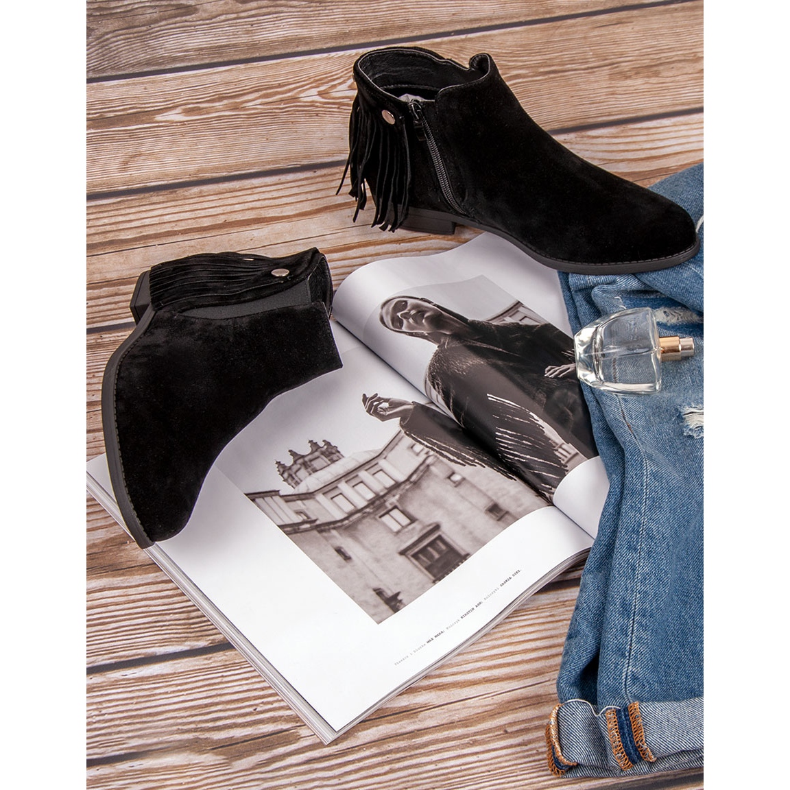 Les bottines noires de Buty Modne sont un modèle unique qui deviendra certainement une décoration de toute garde-robe d'automne et d'hiver. Fabriqués en daim écologique, ils allient élégance et confort de port. Leur universalité en fait un complément parfait aux robes romantiques et aux leggings décontractés, ajoutant un caractère unique à chaque style.
