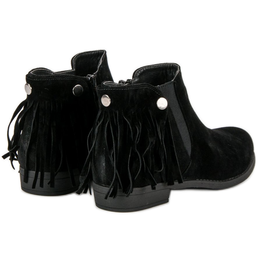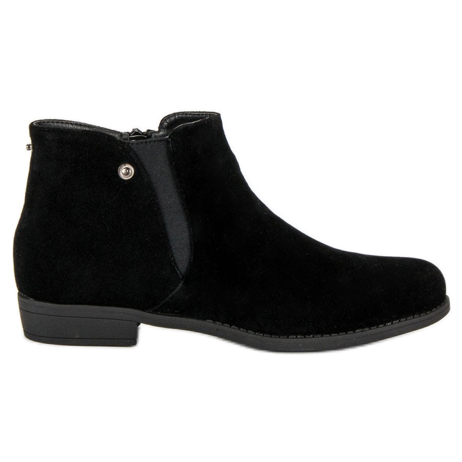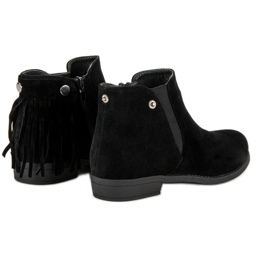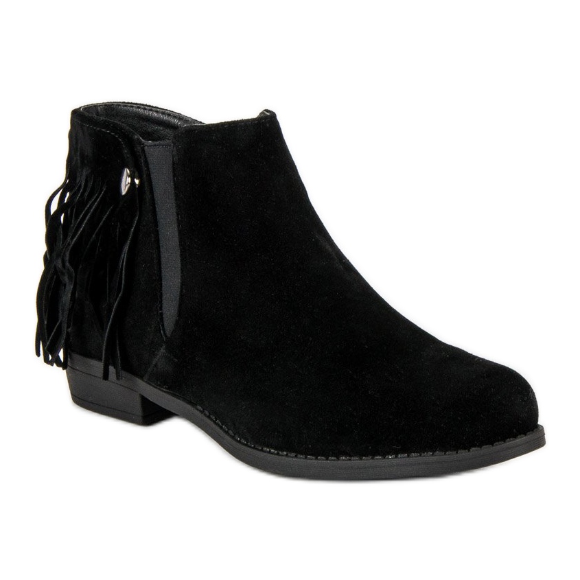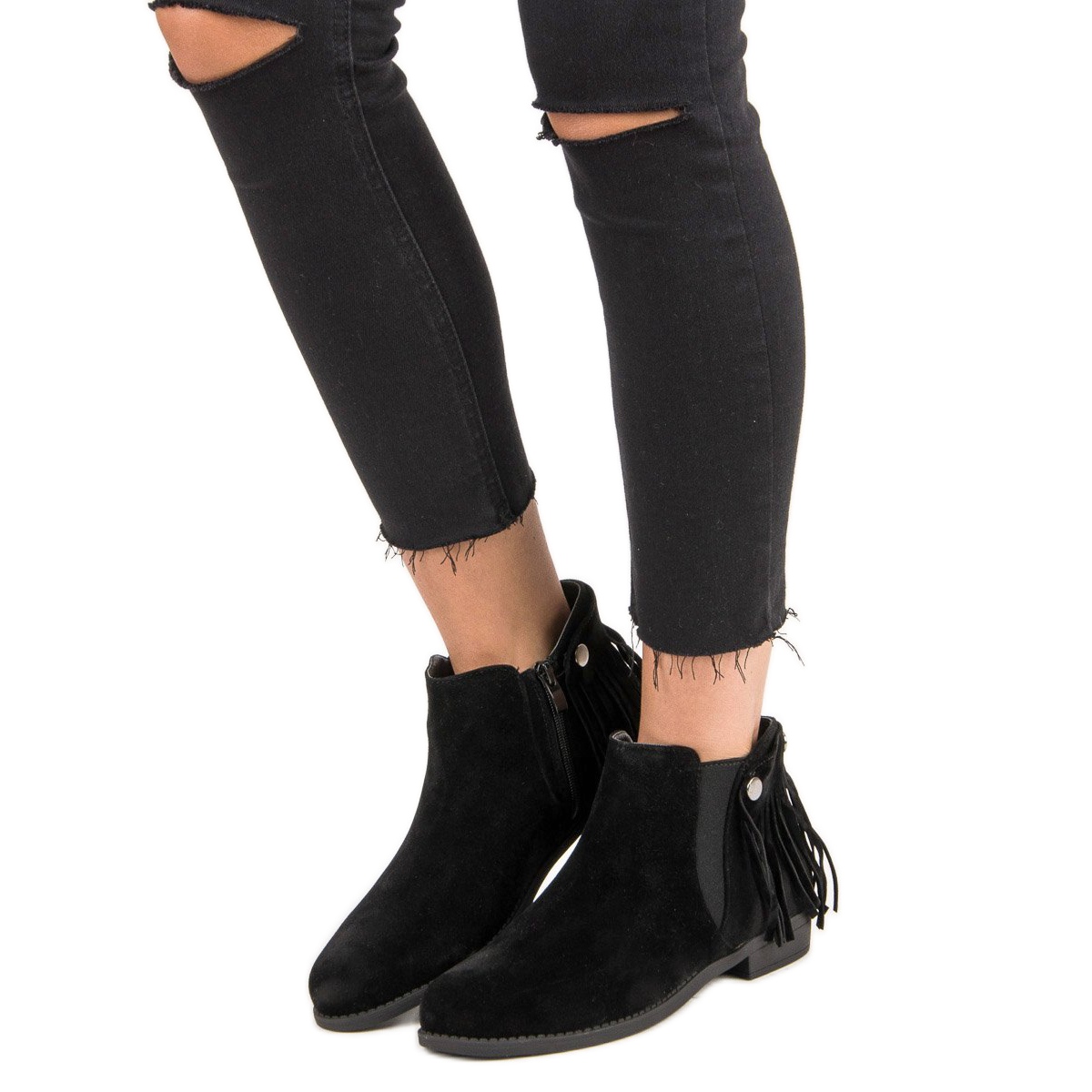 Les bottines noires de Buty Modne sont un modèle unique qui deviendra certainement une décoration de toute garde-robe d'automne et d'hiver. Fabriqués en daim écologique, ils allient élégance et confort de port. Leur universalité en fait un complément parfait aux robes romantiques et aux leggings décontractés, ajoutant un caractère unique à chaque style.