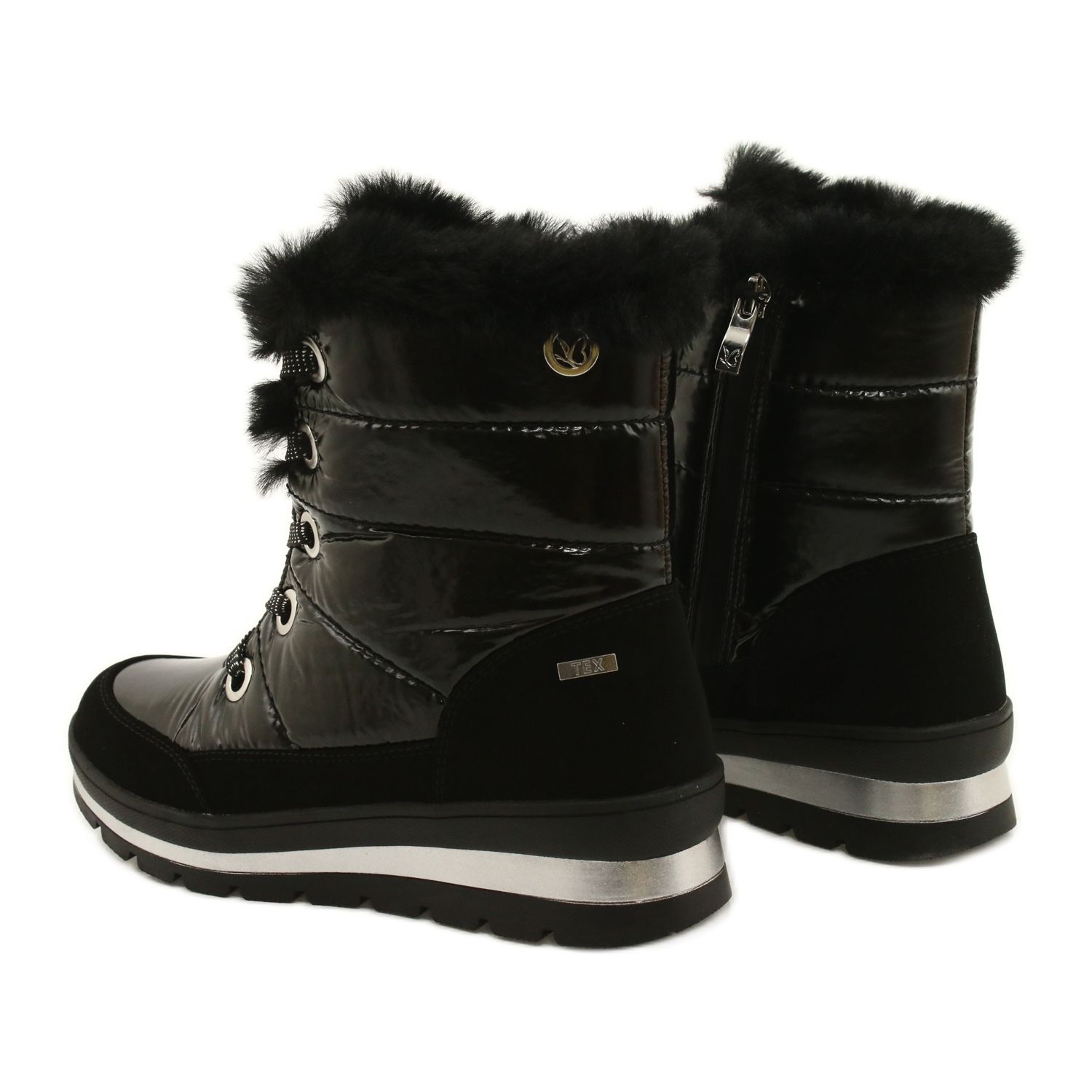 Visuellement, les bottes sont élégantes, elles sont fabriquées dans un noir universel, tant au niveau du matériau extérieur que de la semelle. Leur apparence confirme que la fonctionnalité peut aller de pair avec le bon style. Les bottes n'ont pas de motifs supplémentaires, ce qui les rend adaptées à de nombreux styles d'hiver.