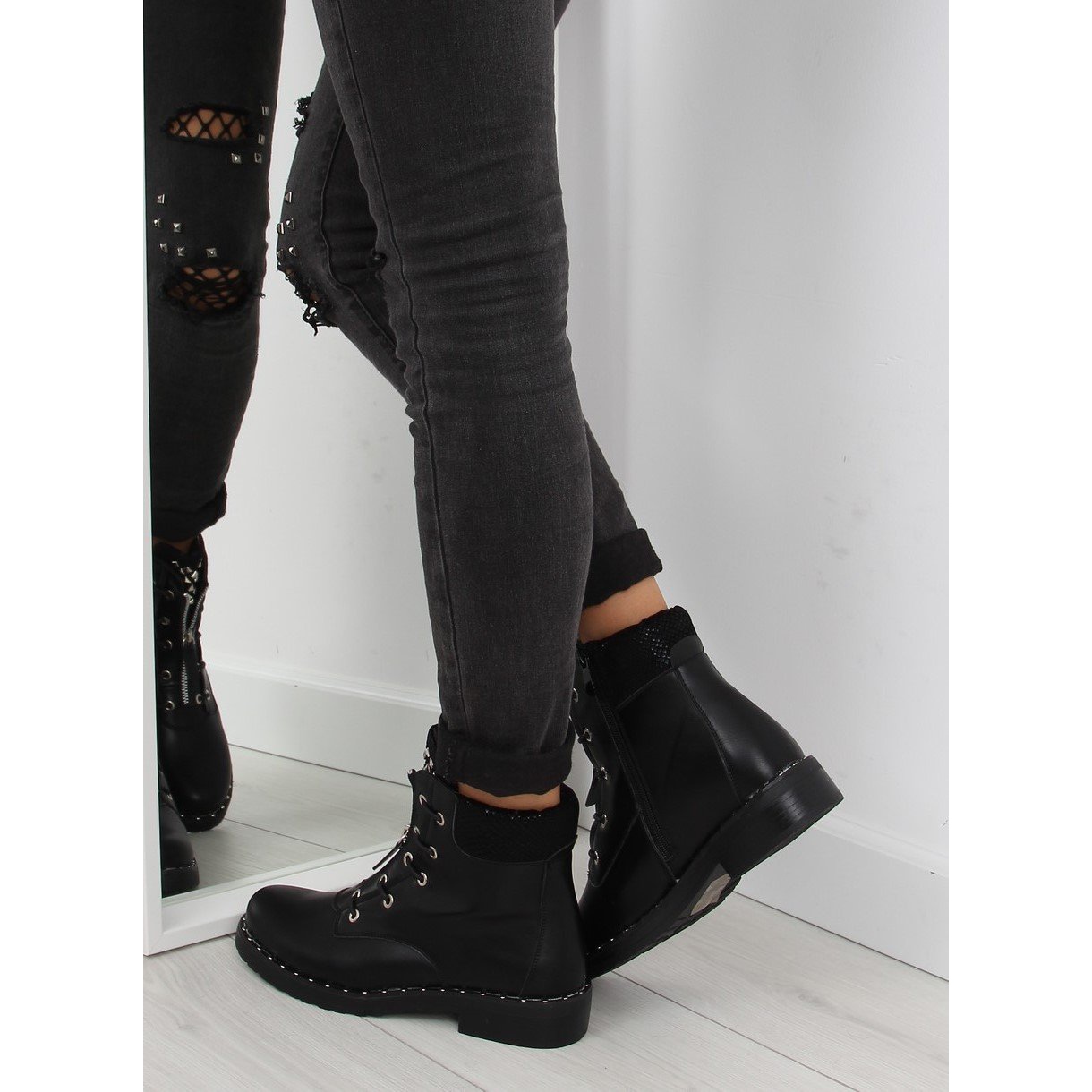 Découvrez un style unique avec les bottes militaires noires BH82-KB noires ! Ces bottes plates uniques pour femmes au style grunge sont un incontournable pour toute femme à la mode. Leur élément décoratif distinctif est une languette cloutée qui ajoute un caractère rock, et une fermeture éclair argentée qui leur donne un look moderne.