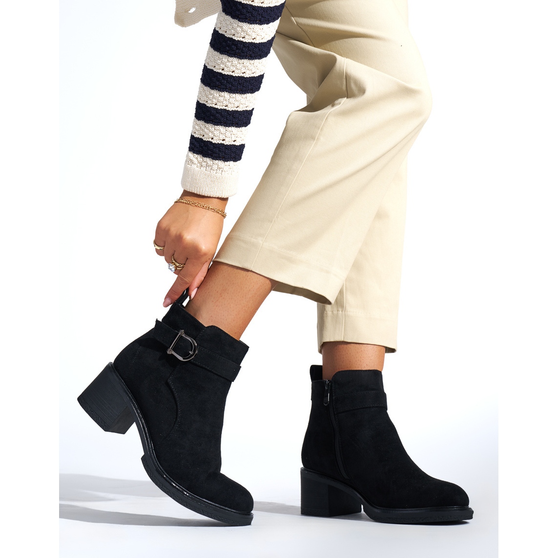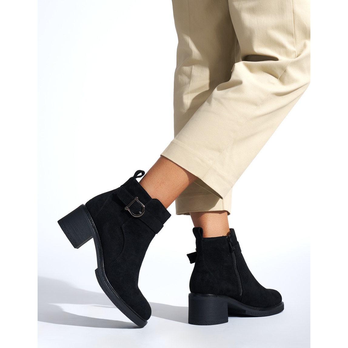 Les bottes sont caractérisées par un talon construit et raidi, qui garantit la stabilité lors de la marche. Grâce à la semelle en plastique lisse, se déplacer dedans est confortable, et en outre leur hauteur atteignant la cheville ajoute une élégance. Un nez rond et un type complet de nez rendent les bottes non seulement élégantes, mais aussi confortables pour les doigts.