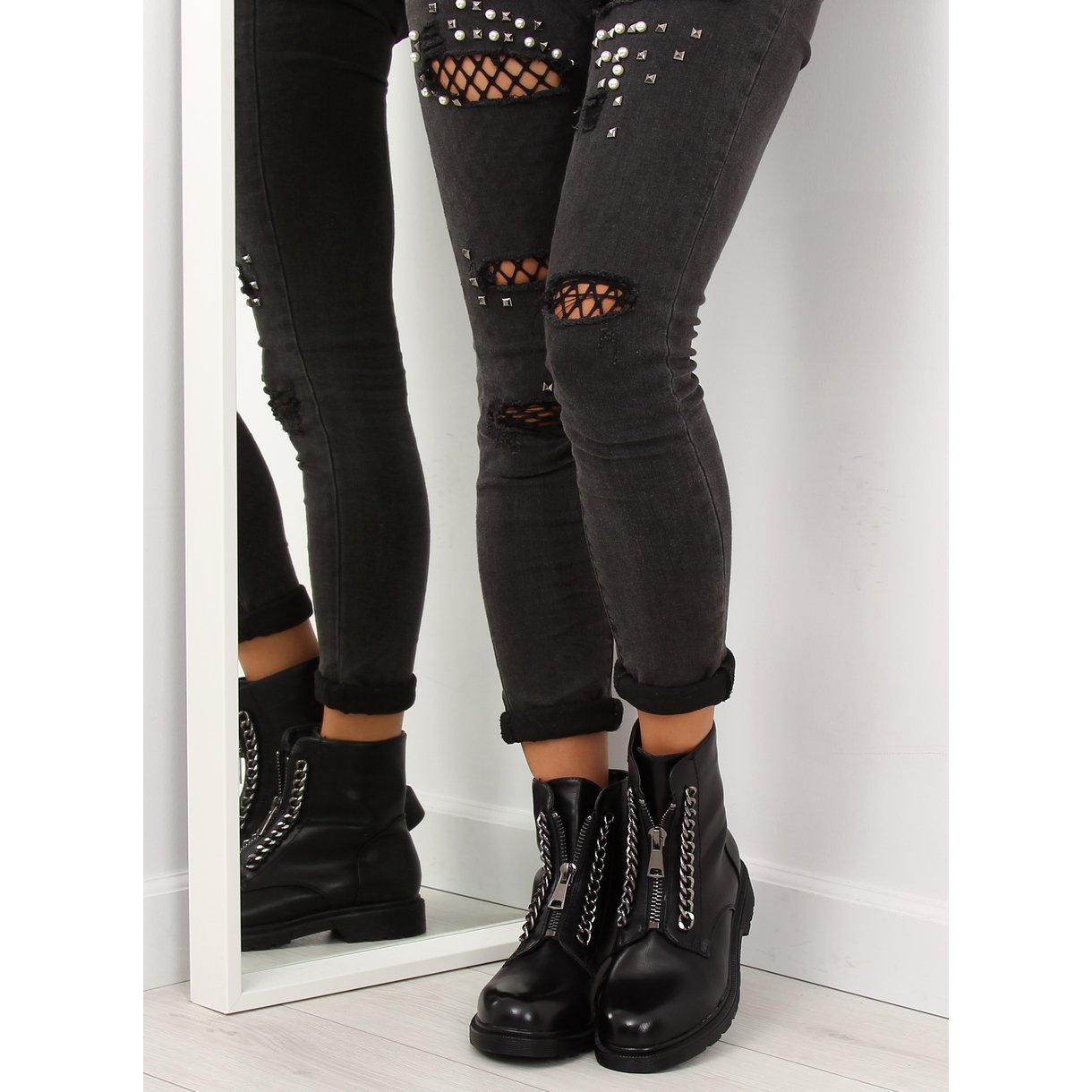 Les bottes bovver noires pour femmes RB13 Black sont un choix parfait pour les femmes qui souhaitent allier style et confort. Ces chaussures originales se distinguent par une fermeture éclair efficace située au milieu et des éléments de chaîne uniques qui leur confèrent un caractère unique. Fabriquées en cuir écologique de haute qualité, les bottes offrent non seulement un look tendance, mais aussi un confort de port grâce à une semelle plate et des bouts ronds.