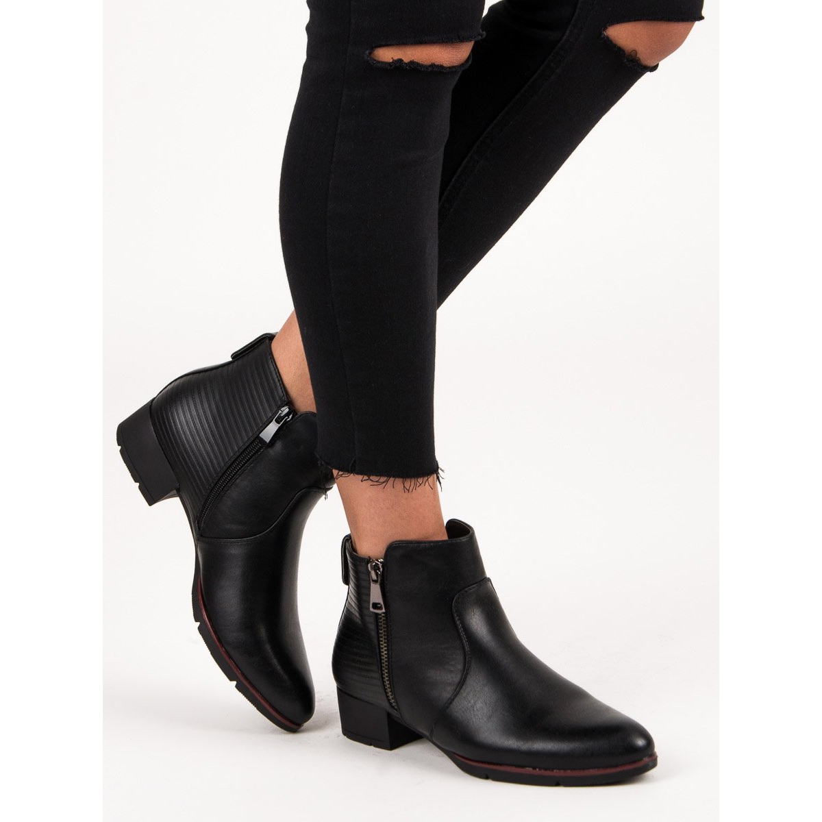La hauteur du talon de 3,5 cm rend les bottes non seulement élégantes, mais aussi stables, vous permettant de bouger librement. Le bout rond et la fermeture éclair latérale sont des détails pratiques qui rendent les chaussures faciles à enfiler et à enlever.