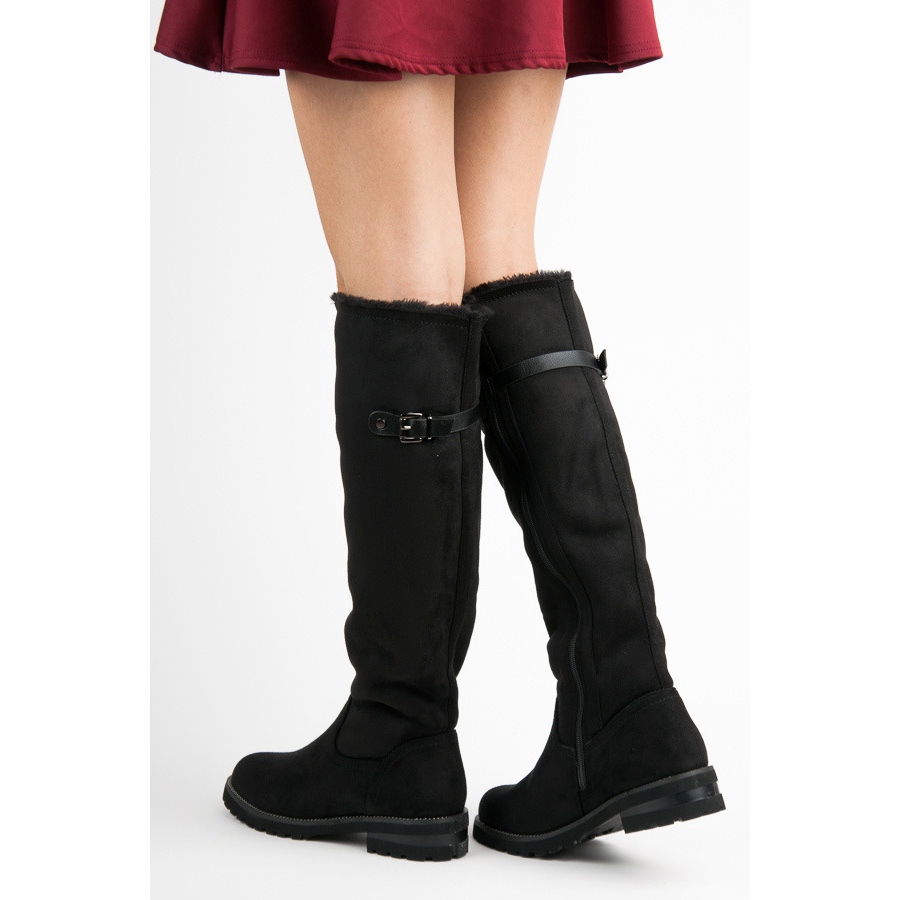 La fermeture éclair à l'intérieur des bottes, qui arrive jusqu'au milieu du mollet, assure un confort lors de l'enfilage et du retrait des chaussures. De plus, le talon plat de 4 cm de hauteur est un gage de confort, vous permettant de bouger librement tout au long de la journée. De plus, la botte est isolée, ce qui la rend parfaite pour les conditions hivernales.