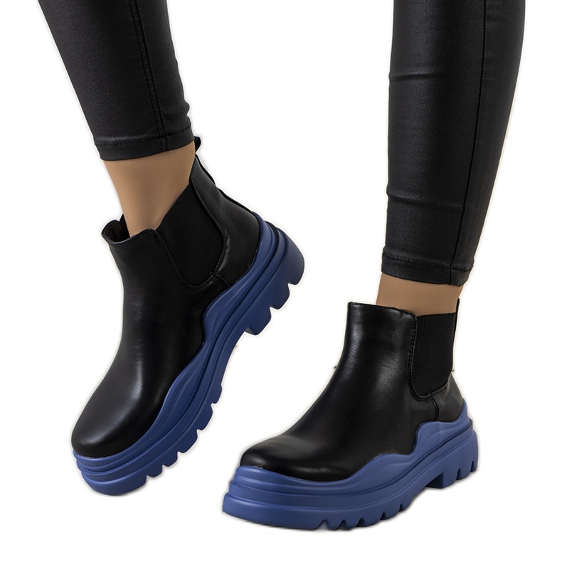 Détails: Bottes noires sur la plate-forme Tausel bleue