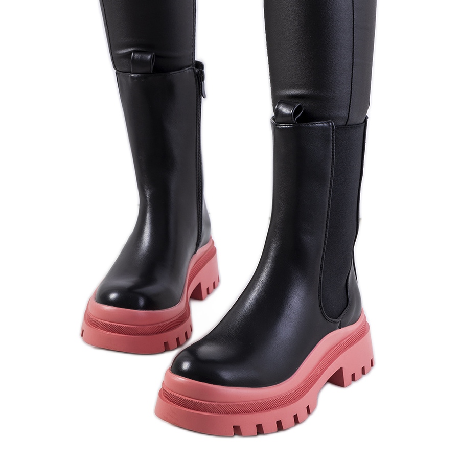 Bottes noires sur la plateforme Ruket rose