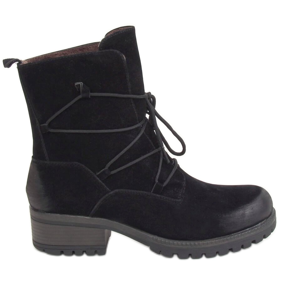 Ces bottes avec semelle et protection ne sont pas seulement un succès de mode, mais aussi une solution pratique pour les journées plus froides. Un talon large et plat d'une hauteur de 4,5 cm garantit la stabilité, et le laçage permet un ajustement parfait à la forme de la jambe. Le nez rond classique leur ajoute du charme et leur finition lisse les rend universels : ils s'adapteront aussi bien aux styles élégants de tous les jours qu'aux tenues plus décontractées.