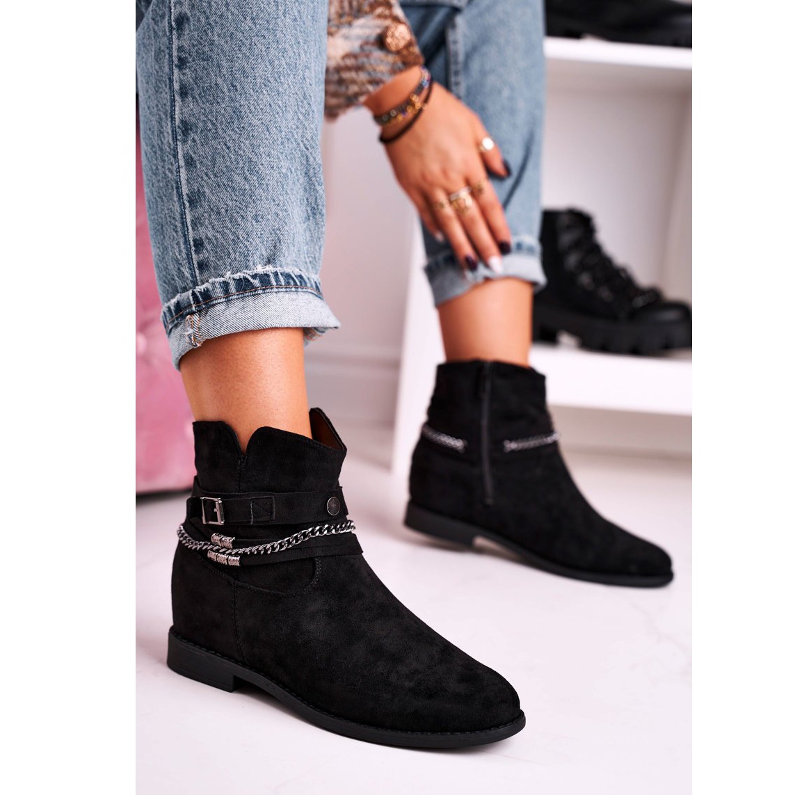 Détails: BUGO Bottes noires sur un coin avec une chaîne Black Eliza le noir