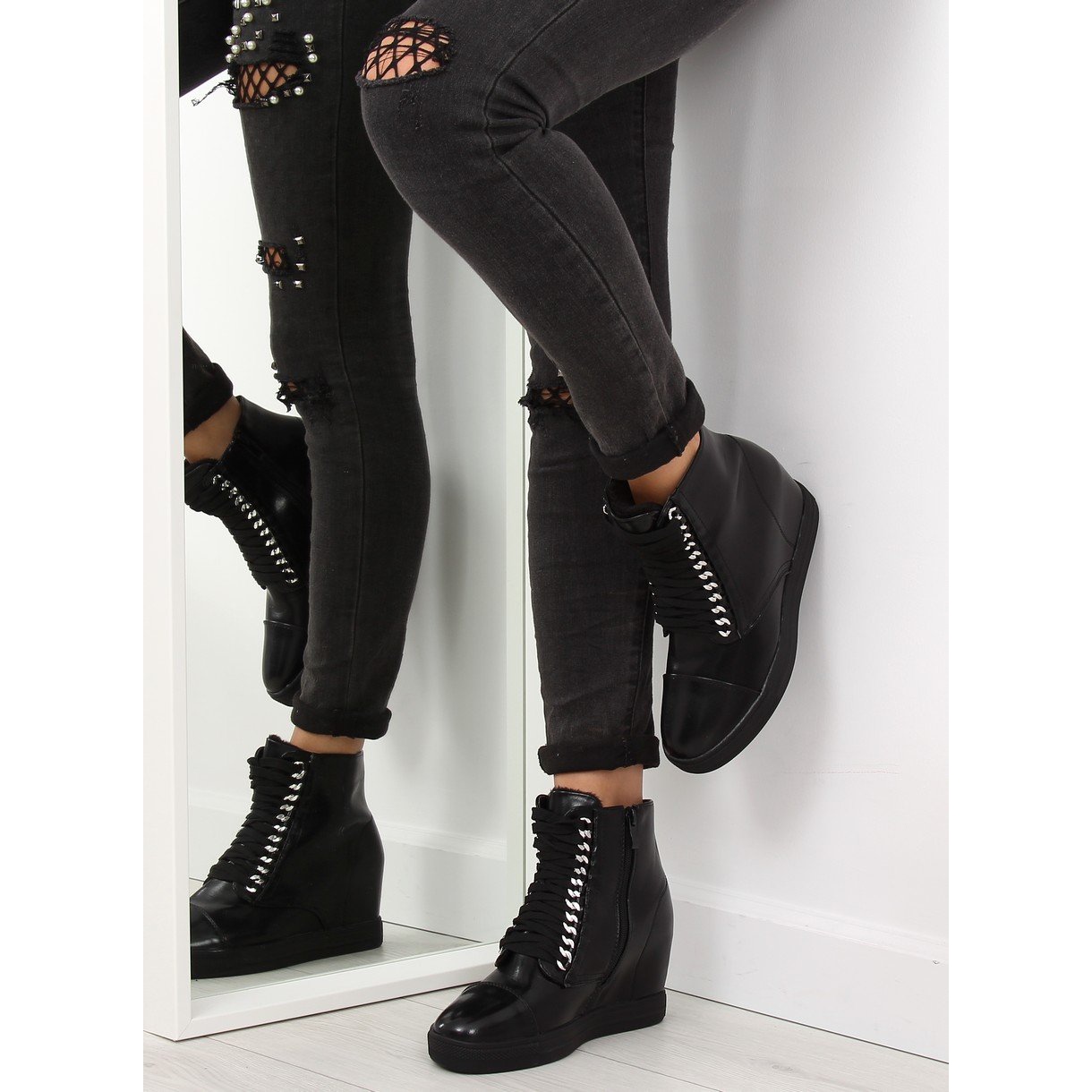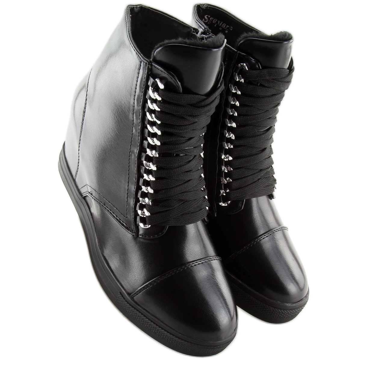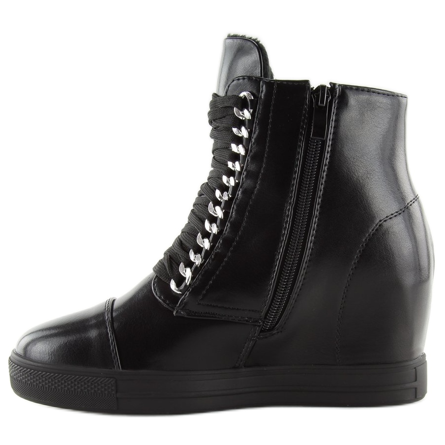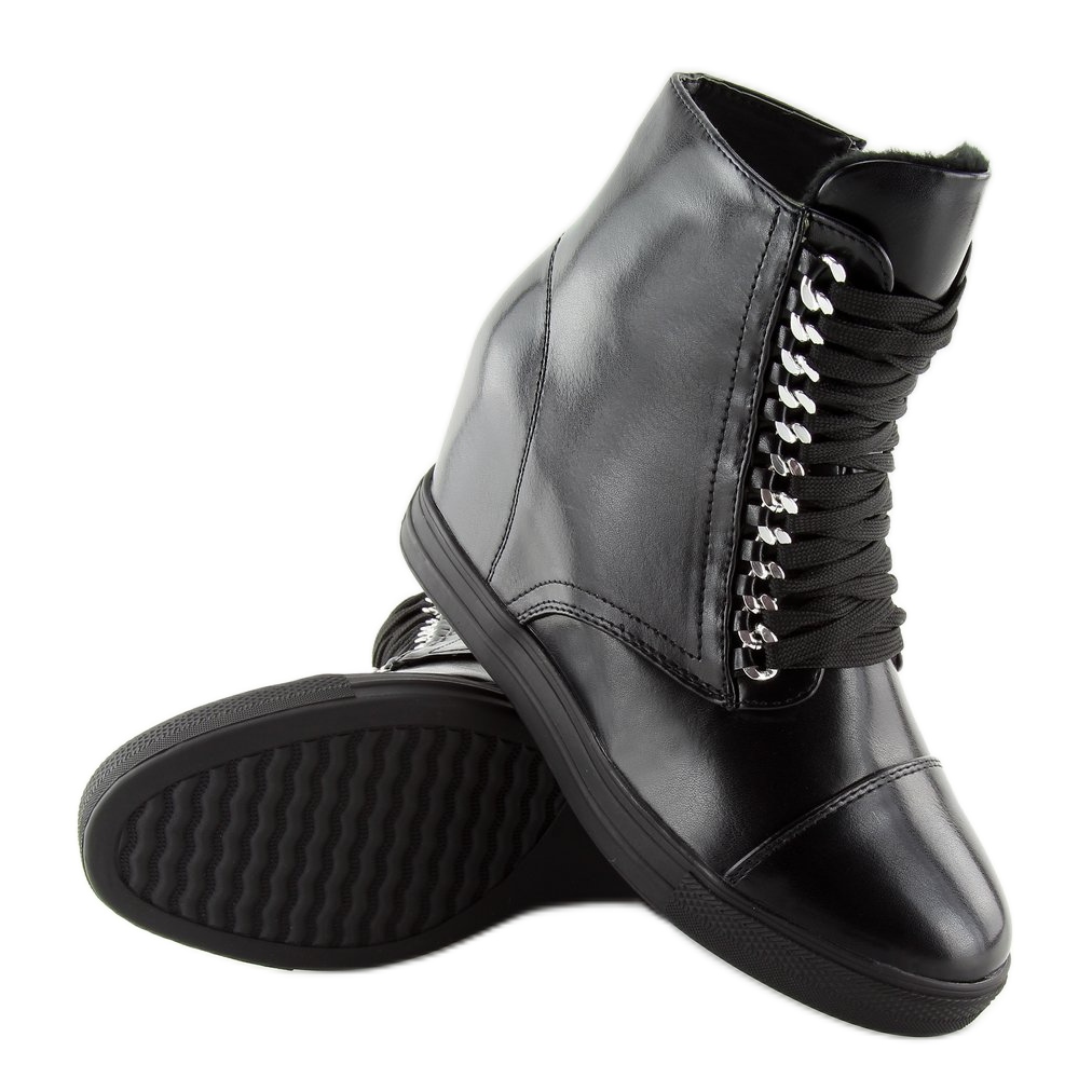 Noir NC737 Les bottines compensées noires cachées sont le choix parfait pour les femmes qui souhaitent allier look tendance et confort. Ces élégantes bottines hautes de 7 cm ajouteront un peu d'éclat à votre garde-robe grâce à leur finition brillante accrocheuse.