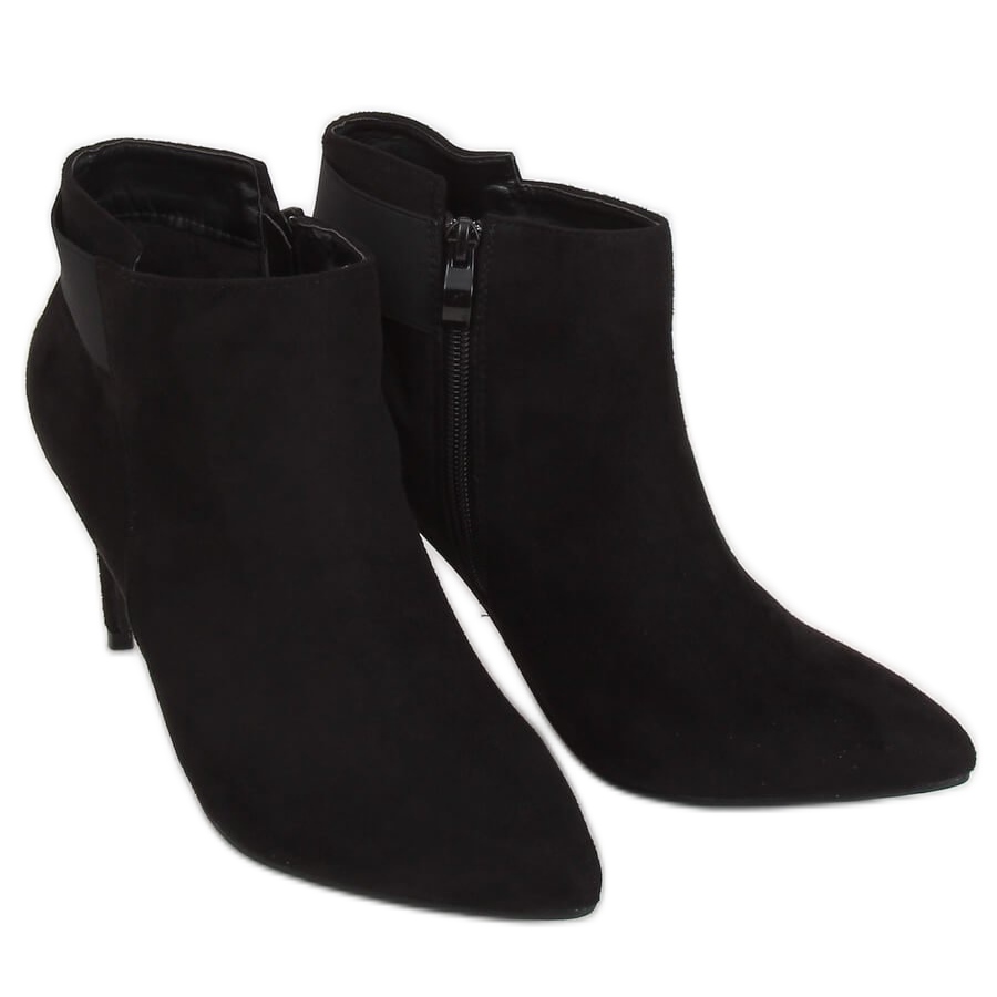 Leur aiguille fine de 9 cm de haut allonge optiquement les jambes, et les orteils galbés avec une pointe délicate ajoutent élégance et classe. Fabriquées en daim écologique de haute qualité, ces bottines attirent l'attention par leur forme élégante et leurs finitions soignées. La fermeture éclair pratique assure non seulement un enfilage facile, mais également un ajustement parfait au pied.
