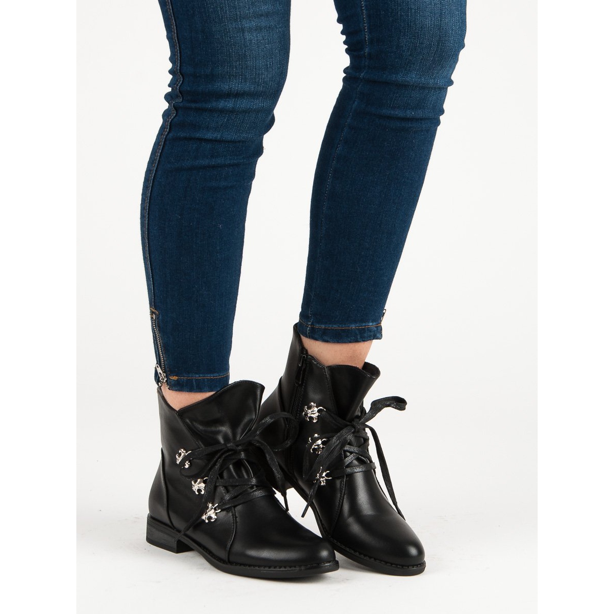 Découvrez l'élégance et le confort avec les dernières bottes plates Weide. Ces bottines noires sont la combinaison parfaite de style et de fonctionnalité. Sans motif, leur design minimaliste en fait un complément parfait à toute garde-robe, qu'elle soit décontractée ou plus élégante.