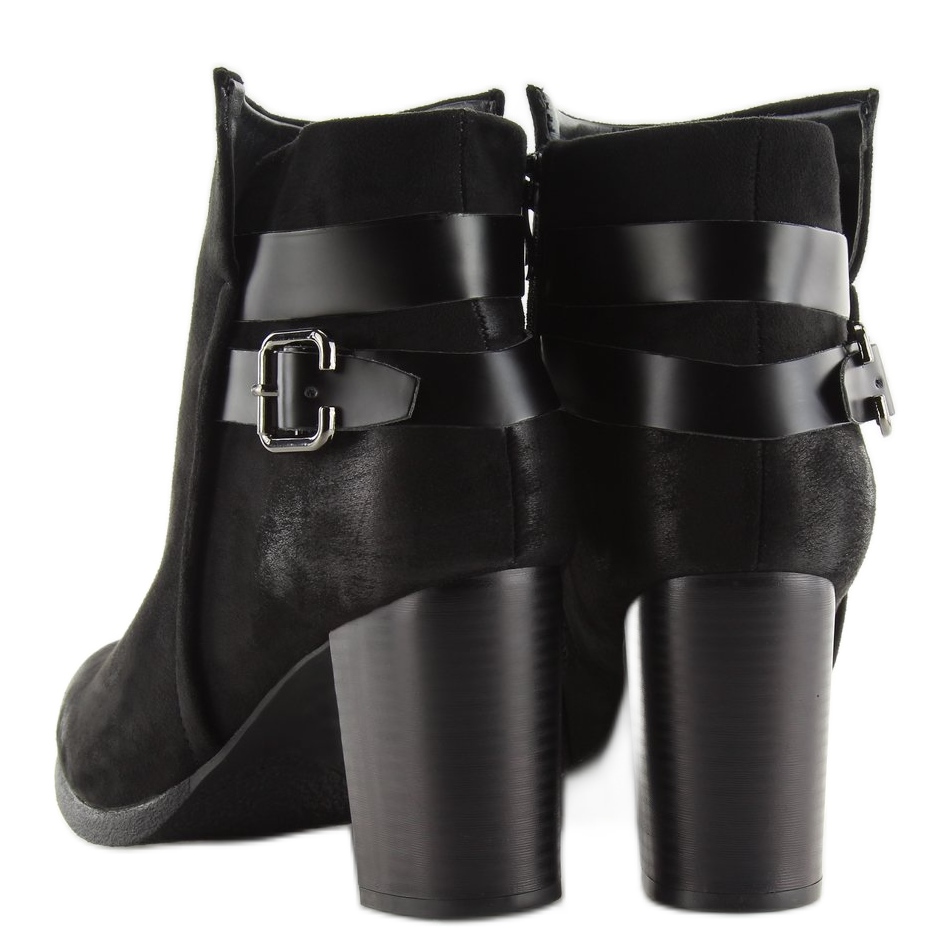 Découvrez l'élégance et le confort en un - nous vous présentons des bottines classiques pour femmes avec un talon stable, qui deviendront certainement un élément irremplaçable de votre garde-robe. Fabriquées en daim écologique de haute qualité, ces bottines noires séduisent non seulement par leur aspect, mais aussi par leur confort de port.
