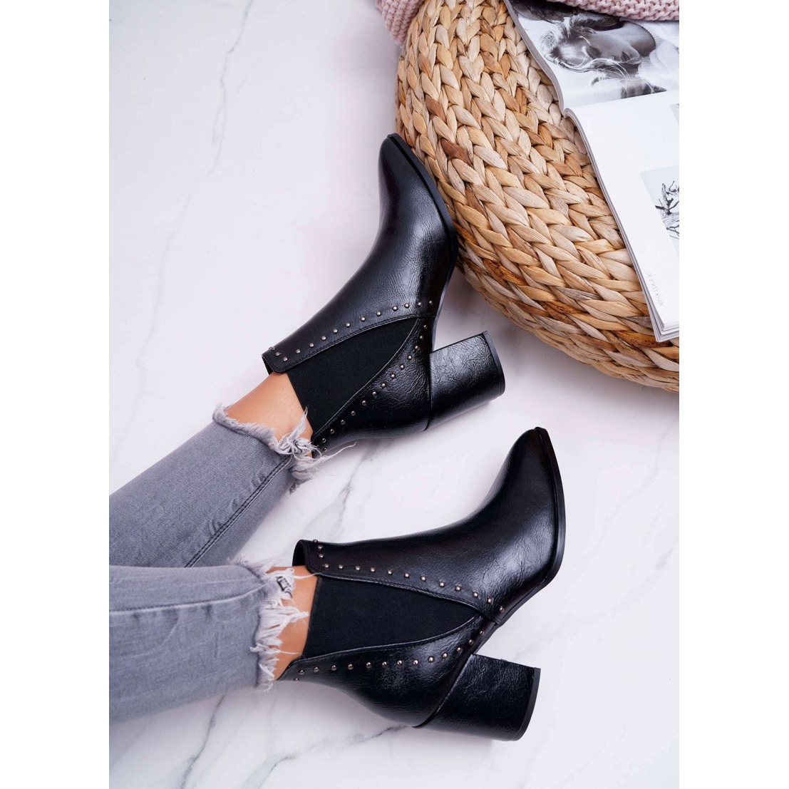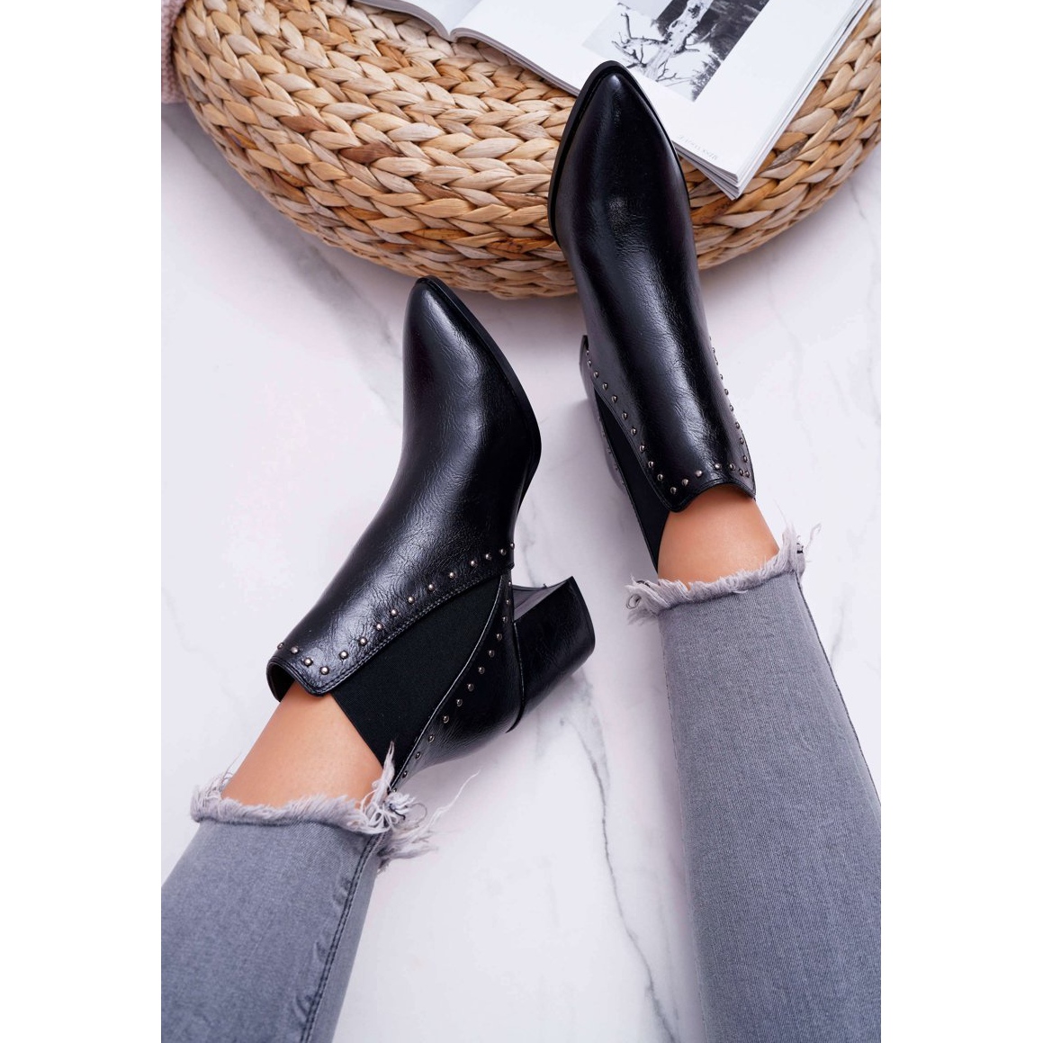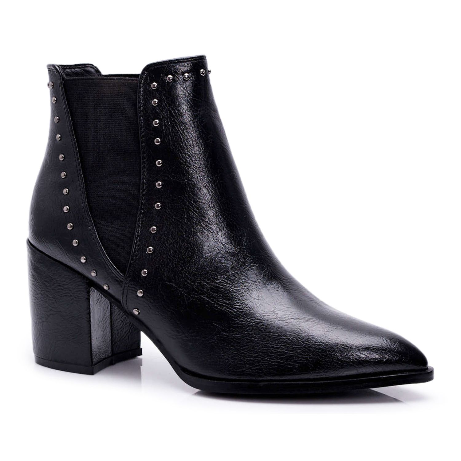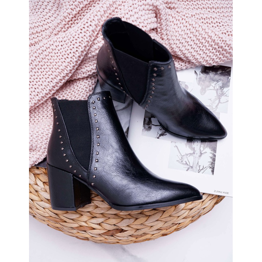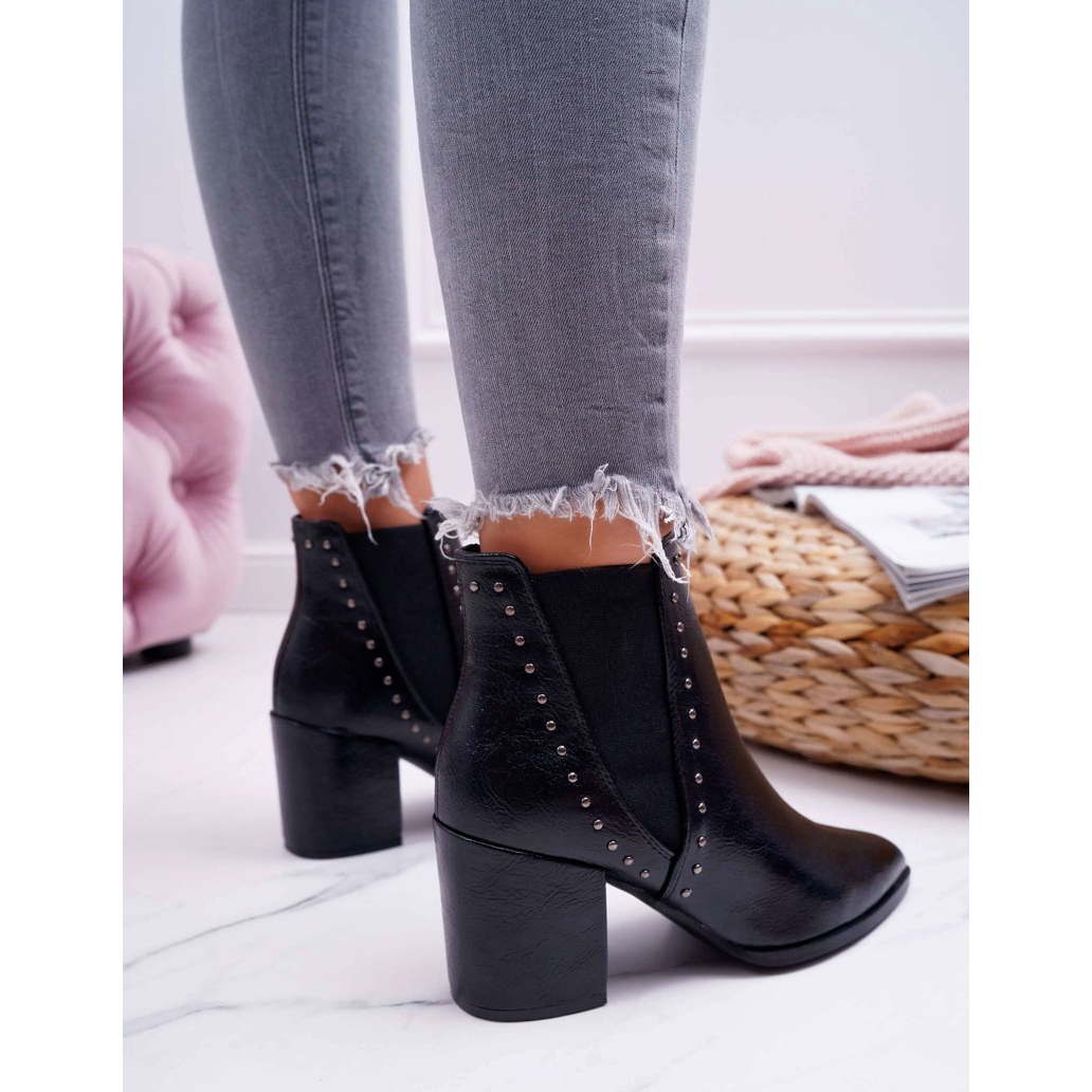 Les bottines à la mode pour femmes FRGIV Trini en noir sont le choix parfait pour les femmes qui apprécient le style et le confort. Dotées d'un bout pointu et d'un talon élégant et délicat de 8 cm, ces chaussures soulignent parfaitement la silhouette en apportant légèreté et féminité. La tige de 11 cm de hauteur est ornée de rivets décoratifs argentés, ce qui leur confère un caractère original.