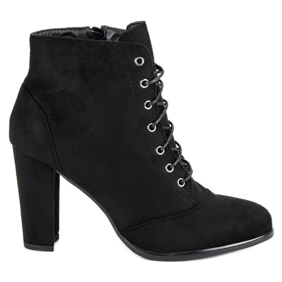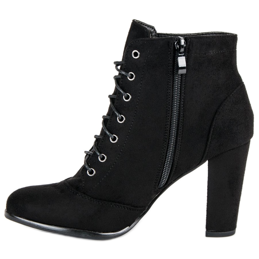 Découvrez l'élégance et le confort avec les bottines à talons hauts à lacets de Juliet. Ces bottes noires classiques sont soigneusement fabriquées en daim écologique, ce qui affecte non seulement leur esthétique, mais aussi le respect de l'environnement. Ce modèle est parfait aussi bien pour un usage quotidien que pour les occasions spéciales, grâce à son design intemporel.