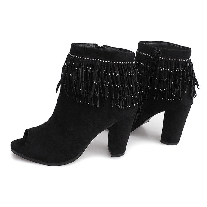 Ces bottines noires séduiront sûrement toutes les fans de mode à la recherche de chaussures élégantes et confortables. Les bottines ouvertes à talons hauts F832 sont une proposition qui allie à la fois style et fonctionnalité, et grâce à l'emballage d'origine du fabricant, elles seront une excellente idée cadeau. Enrichissez votre collection de chaussures avec ces bottines uniques !