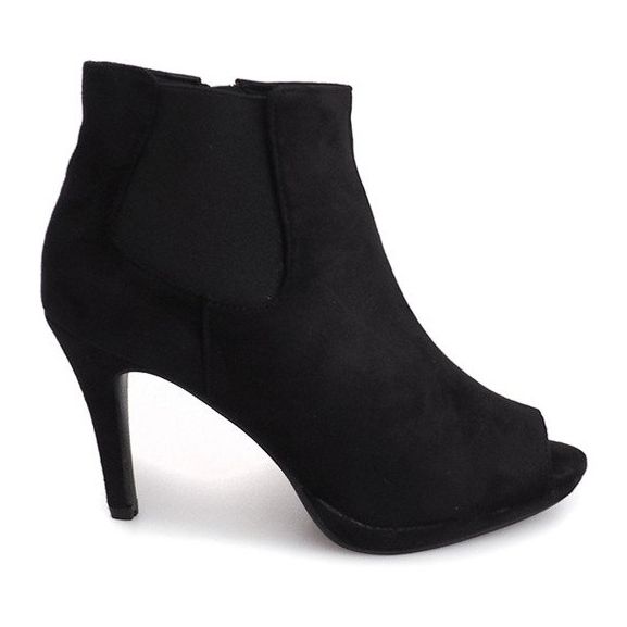 Les bottines noires à bout ouvert sont extrêmement universelles : elles s'adaptent aussi bien aux tenues décontractées qu'aux tenues plus élégantes. La fermeture éclair facilite l'enfilage et le confort de port est assuré par une semelle synthétique et une semelle intérieure en matière différente. Un accent intéressant est l'absence de nez, qui leur ajoute de la légèreté.